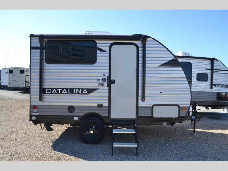 With any Catalina Summit Series 7' by Coachmen RV, you can create an easier adventure with the versatility and simplicity of the shorter lengths and lighter weights! Each includes a premium exterior graphics package, a smooth HD aluminum radius front, and EZ lube axles with leaf spring suspension. The exterior offers a heavy duty standard tongue jack, a diamond plate rock guard to protect against road debris, exterior RG-6 coax cabling and satellite prep, rear view camera prep, and flush mount baggage doors with radius corners for your outdoor gear. Inside, you will enjoy a premium JBL interior speaker, USB charging ports, seamless Thermofoil countertops throughout, a deep basin farm style sink for easy cleanup, and GE kitchen appliances. It's time to choose an affordable and maneuverable single axle trailer today!
