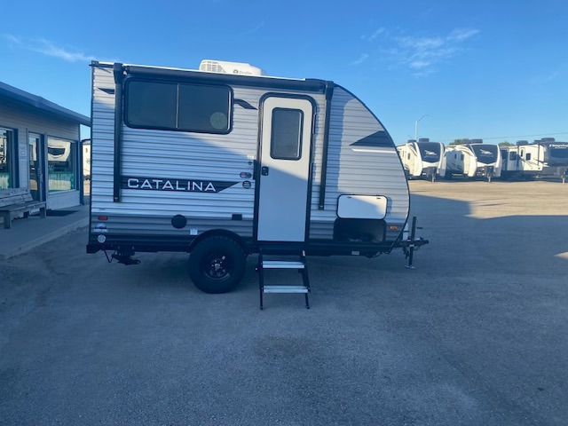 With any Catalina Summit Series 7' by Coachmen RV, you can create an easier adventure with the versatility and simplicity of the shorter lengths and lighter weights! Each includes a premium exterior graphics package, a smooth HD aluminum radius front, and EZ lube axles with leaf spring suspension. The exterior offers a heavy duty standard tongue jack, a diamond plate rock guard to protect against road debris, exterior RG-6 coax cabling and satellite prep, rear view camera prep, and flush mount baggage doors with radius corners for your outdoor gear. Inside, you will enjoy a premium JBL interior speaker, USB charging ports, seamless Thermofoil countertops throughout, a deep basin farm style sink for easy cleanup, and GE kitchen appliances. It's time to choose an affordable and maneuverable single axle trailer today!