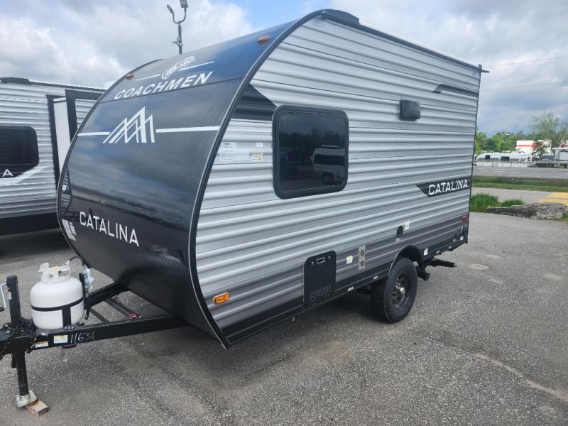 With any Catalina Summit Series 7' by Coachmen RV, you can create an easier adventure with the versatility and simplicity of the shorter lengths and lighter weights! Each includes a premium exterior graphics package, a smooth HD aluminum radius front, and EZ lube axles with leaf spring suspension. The exterior offers a heavy duty standard tongue jack, a diamond plate rock guard to protect against road debris, exterior RG-6 coax cabling and satellite prep, rear view camera prep, and flush mount baggage doors with radius corners for your outdoor gear. Inside, you will enjoy a premium JBL interior speaker, USB charging ports, seamless Thermofoil countertops throughout, a deep basin farm style sink for easy cleanup, and GE kitchen appliances. It's time to choose an affordable and maneuverable single axle trailer today!