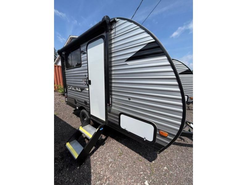With any Catalina Summit Series 7' by Coachmen RV, you can create an easier adventure with the versatility and simplicity of the shorter lengths and lighter weights! Each includes a premium exterior graphics package, a smooth HD aluminum radius front, and EZ lube axles with leaf spring suspension. The exterior offers a heavy duty standard tongue jack, a diamond plate rock guard to protect against road debris, exterior RG-6 coax cabling and satellite prep, rear view camera prep, and flush mount baggage doors with radius corners for your outdoor gear. Inside, you will enjoy a premium JBL interior speaker, USB charging ports, seamless Thermofoil countertops throughout, a deep basin farm style sink for easy cleanup, and GE kitchen appliances. It's time to choose an affordable and maneuverable single axle trailer today!