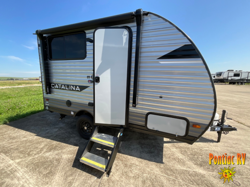 With any Catalina Summit Series 7' by Coachmen RV, you can create an easier adventure with the versatility and simplicity of the shorter lengths and lighter weights! Each includes a premium exterior graphics package, a smooth HD aluminum radius front, and EZ lube axles with leaf spring suspension. The exterior offers a heavy duty standard tongue jack, a diamond plate rock guard to protect against road debris, exterior RG-6 coax cabling and satellite prep, rear view camera prep, and flush mount baggage doors with radius corners for your outdoor gear. Inside, you will enjoy a premium JBL interior speaker, USB charging ports, seamless Thermofoil countertops throughout, a deep basin farm style sink for easy cleanup, and GE kitchen appliances. It's time to choose an affordable and maneuverable single axle trailer today!