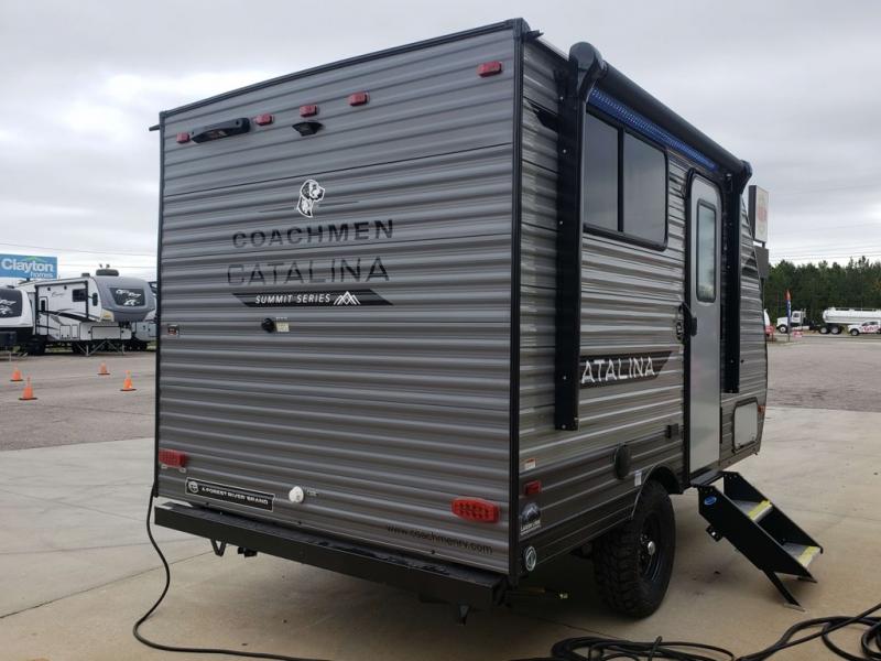 With any Catalina Summit Series 7' by Coachmen RV, you can create an easier adventure with the versatility and simplicity of the shorter lengths and lighter weights! Each includes a premium exterior graphics package, a smooth HD aluminum radius front, and EZ lube axles with leaf spring suspension. The exterior offers a heavy duty standard tongue jack, a diamond plate rock guard to protect against road debris, exterior RG-6 coax cabling and satellite prep, rear view camera prep, and flush mount baggage doors with radius corners for your outdoor gear. Inside, you will enjoy a premium JBL interior speaker, USB charging ports, seamless Thermofoil countertops throughout, a deep basin farm style sink for easy cleanup, and GE kitchen appliances. It's time to choose an affordable and maneuverable single axle trailer today!