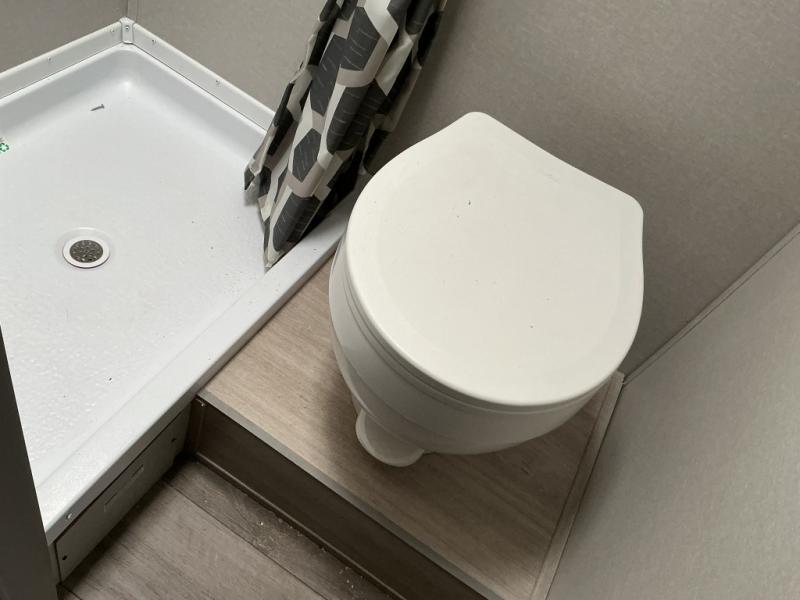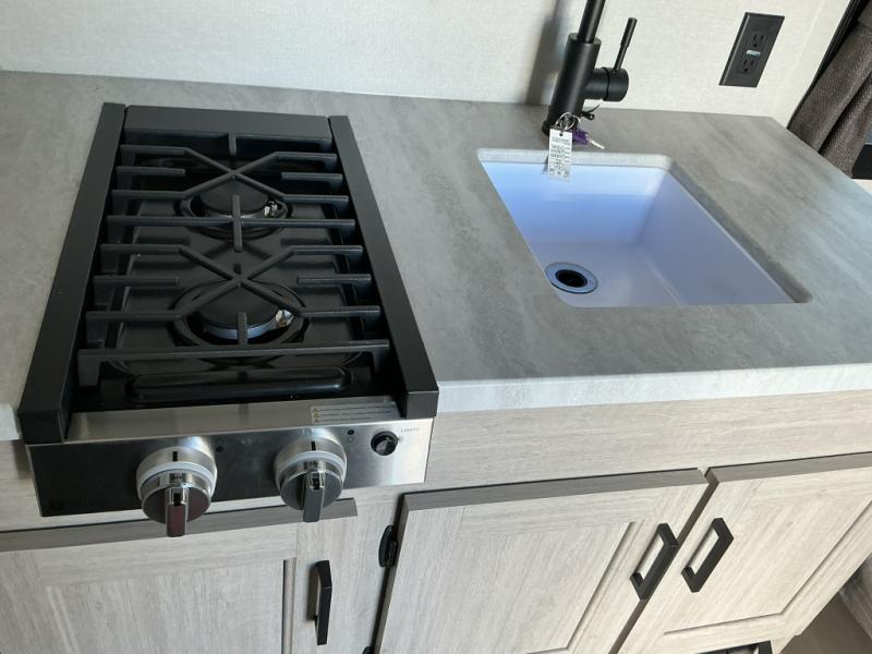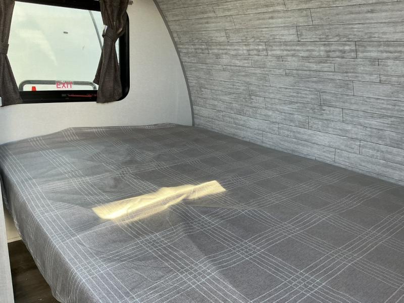 Lightweight camping is easier than you think with this travel trailer in tow! The front 54" x 74" queen bed will provide a great night's rest each night, while the little ones or your guests take the bunk beds. There is a handy shelf above the front bed for your belongings plus additional bedroom storage. A private bath includes a 24" x 32" shower and a toilet with a mirror behind it so you can freshen up each day. You'll also find a two burner cooktop and microwave oven to make meals each day plus a 3.3 cu. ft. 12V refrigerator for food storage!