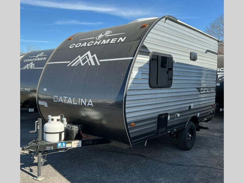 With any Catalina Summit Series 7' by Coachmen RV, you can create an easier adventure with the versatility and simplicity of the shorter lengths and lighter weights! Each includes a premium exterior graphics package, a smooth HD aluminum radius front, and EZ lube axles with leaf spring suspension. The exterior offers a heavy duty standard tongue jack, a diamond plate rock guard to protect against road debris, exterior RG-6 coax cabling and satellite prep, rear view camera prep, and flush mount baggage doors with radius corners for your outdoor gear. Inside, you will enjoy a premium JBL interior speaker, USB charging ports, seamless Thermofoil countertops throughout, a deep basin farm style sink for easy cleanup, and GE kitchen appliances. It's time to choose an affordable and maneuverable single axle trailer today!