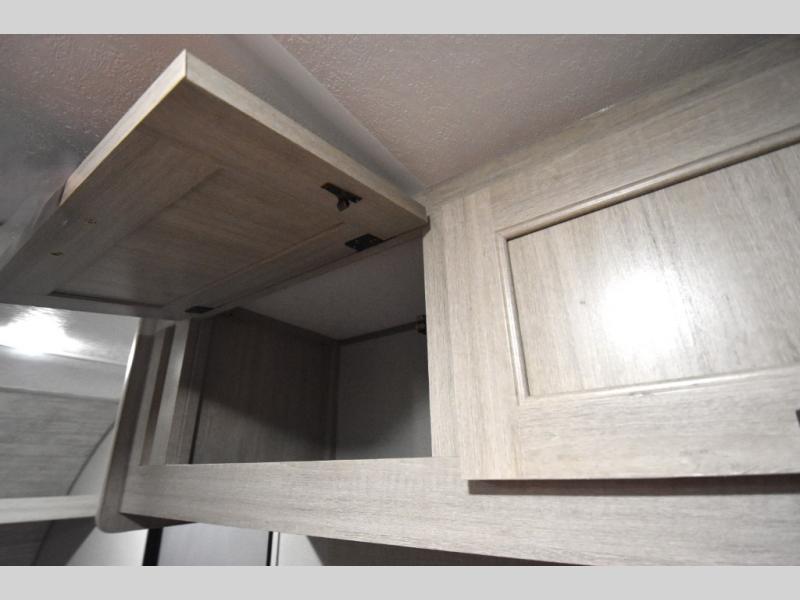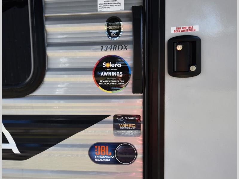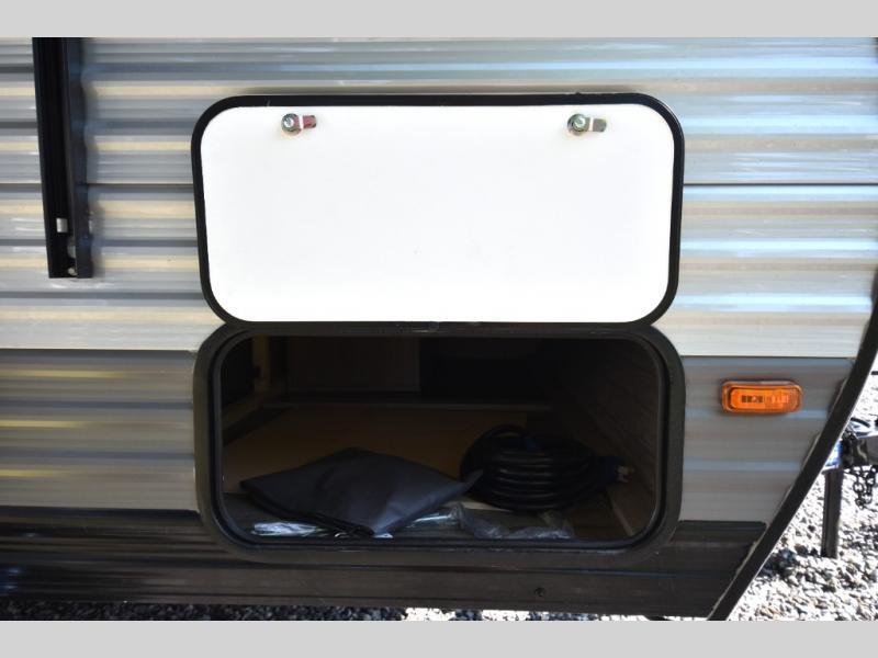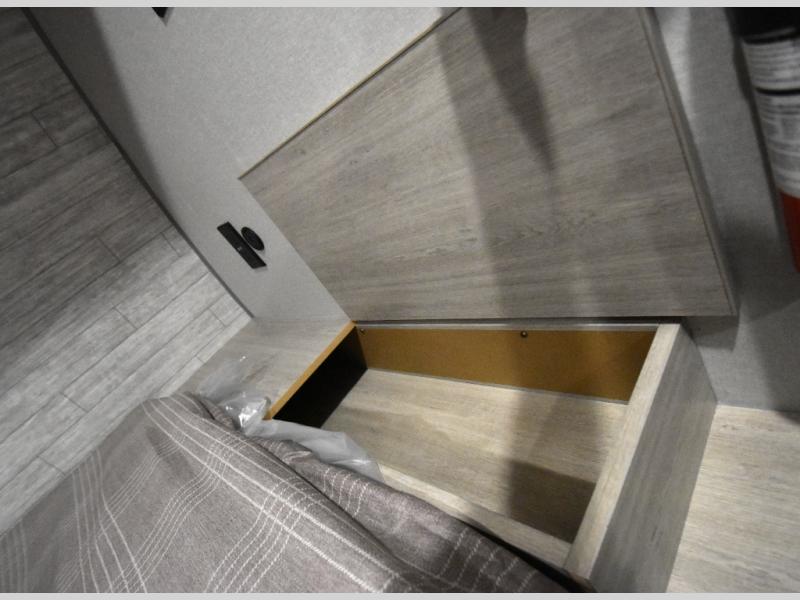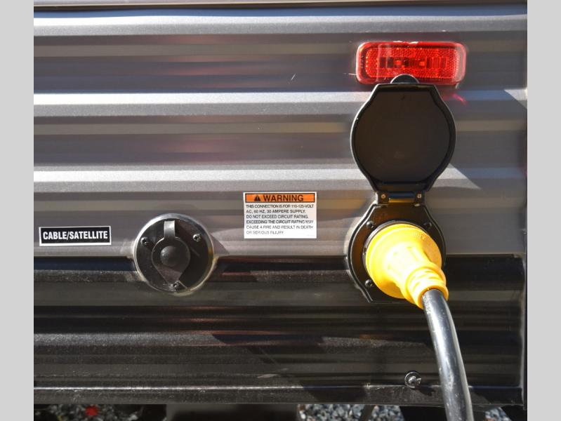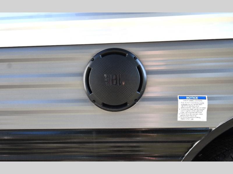 Exterior Features: Comes with an 8-foot power awning, offering shade and outdoor living space. Additionally, exterior storage compartments are available for camping gear and essentials.