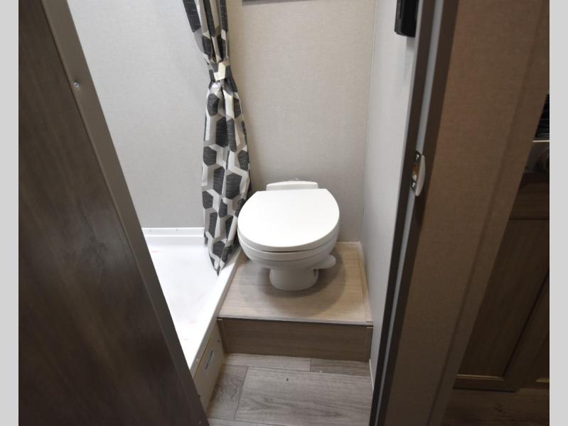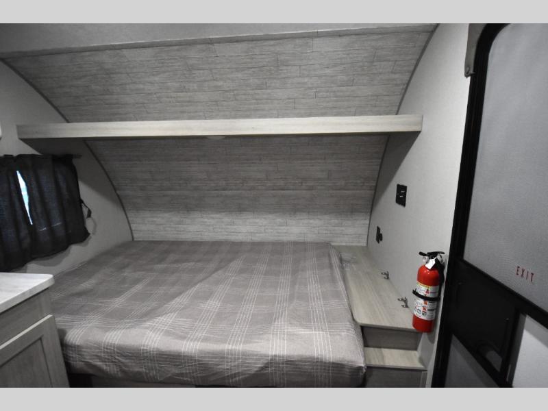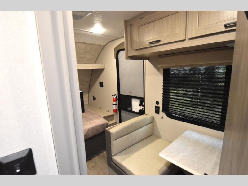 Sleeping Capacity: Accommodates up to three people, featuring a front queen bed and a 29" dinette that converts into an additional sleeping area.
