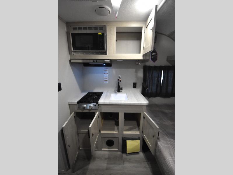 Kitchen Amenities: Equipped with a two-burner cooktop, microwave, and refrigerator, allowing for convenient meal preparation on the go.