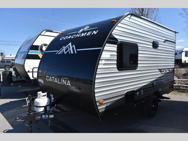 With any Catalina Summit Series 7' by Coachmen RV, you can create an easier adventure with the versatility and simplicity of the shorter lengths and lighter weights! Each includes a premium exterior graphics package, a smooth HD aluminum radius front, and EZ lube axles with leaf spring suspension. The exterior offers a heavy duty standard tongue jack, a diamond plate rock guard to protect against road debris, exterior RG-6 coax cabling and satellite prep, rear view camera prep, and flush mount baggage doors with radius corners for your outdoor gear. Inside, you will enjoy a premium JBL interior speaker, USB charging ports, seamless Thermofoil countertops throughout, a deep basin farm style sink for easy cleanup, and GE kitchen appliances. It's time to choose an affordable and maneuverable single axle trailer today!
