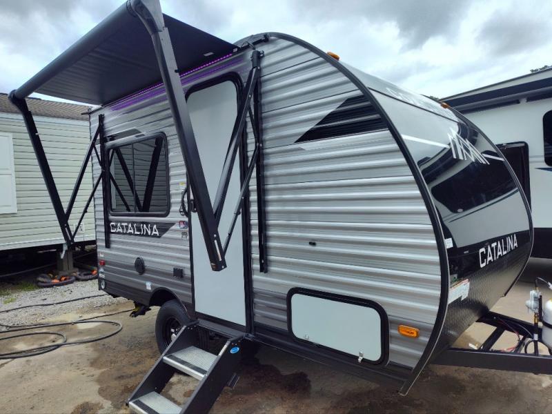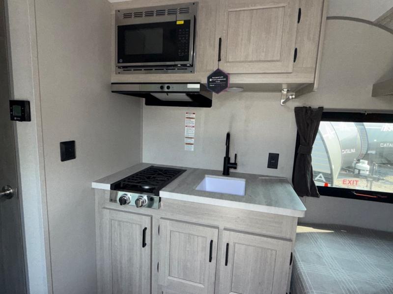 With any Catalina Summit Series 7' by Coachmen RV, you can create an easier adventure with the versatility and simplicity of the shorter lengths and lighter weights! Each includes a premium exterior graphics package, a smooth HD aluminum radius front, and EZ lube axles with leaf spring suspension. The exterior offers a heavy duty standard tongue jack, a diamond plate rock guard to protect against road debris, exterior RG-6 coax cabling and satellite prep, rear view camera prep, and flush mount baggage doors with radius corners for your outdoor gear. Inside, you will enjoy a premium JBL interior speaker, USB charging ports, seamless Thermofoil countertops throughout, a deep basin farm style sink for easy cleanup, and GE kitchen appliances. It's time to choose an affordable and maneuverable single axle trailer today!