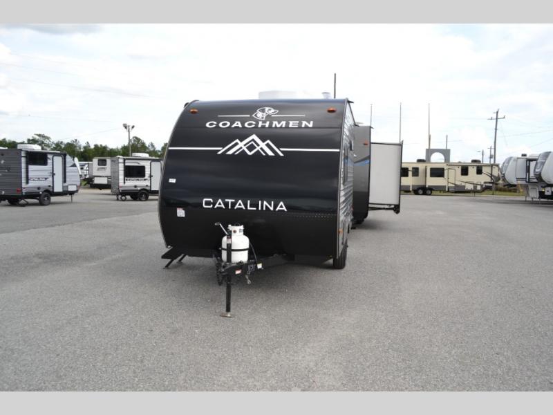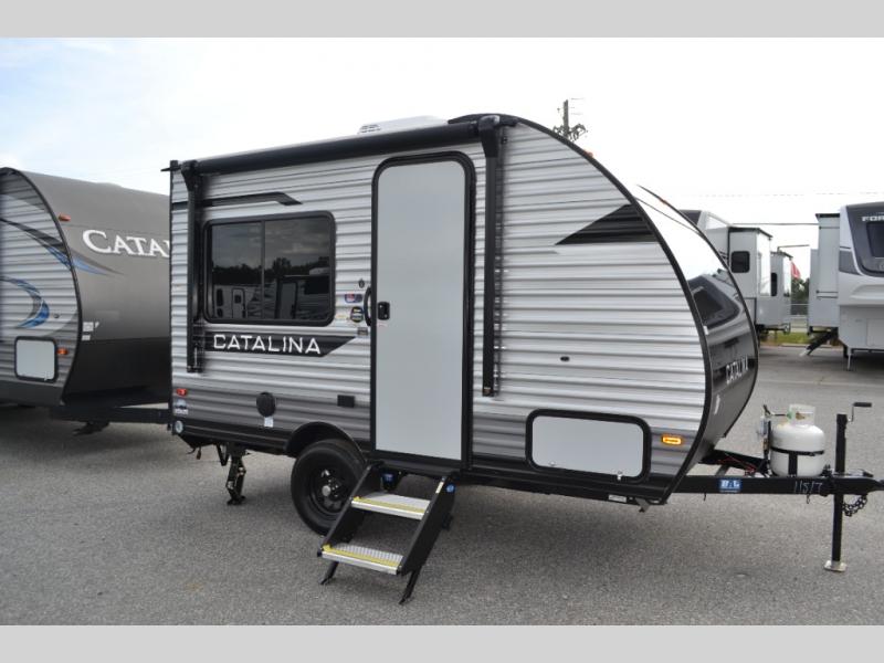 With any Catalina Summit Series 7' by Coachmen RV, you can create an easier adventure with the versatility and simplicity of the shorter lengths and lighter weights! Each includes a premium exterior graphics package, a smooth HD aluminum radius front, and EZ lube axles with leaf spring suspension. The exterior offers a heavy duty standard tongue jack, a diamond plate rock guard to protect against road debris, exterior RG-6 coax cabling and satellite prep, rear view camera prep, and flush mount baggage doors with radius corners for your outdoor gear. Inside, you will enjoy a premium JBL interior speaker, USB charging ports, seamless Thermofoil countertops throughout, a deep basin farm style sink for easy cleanup, and GE kitchen appliances. It's time to choose an affordable and maneuverable single axle trailer today!