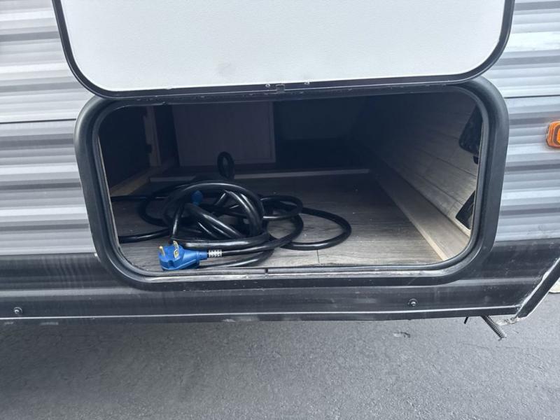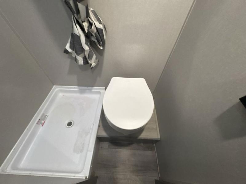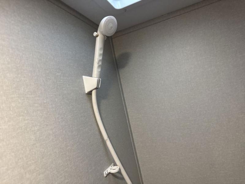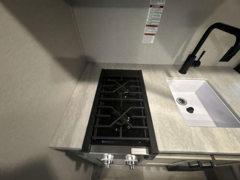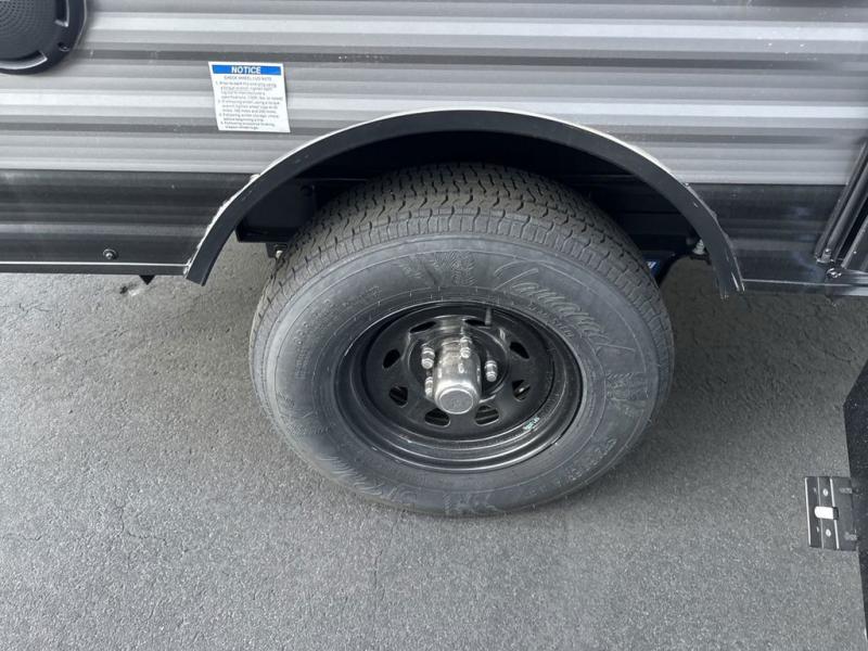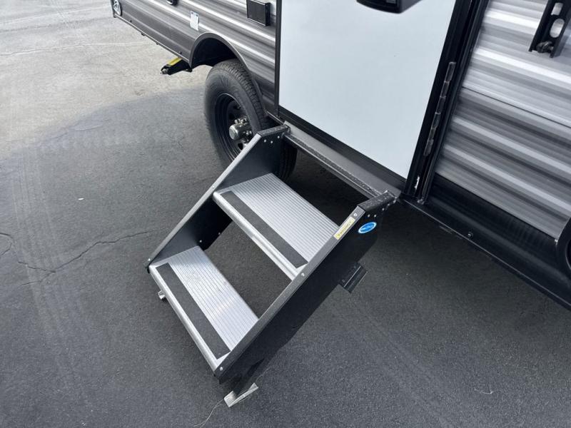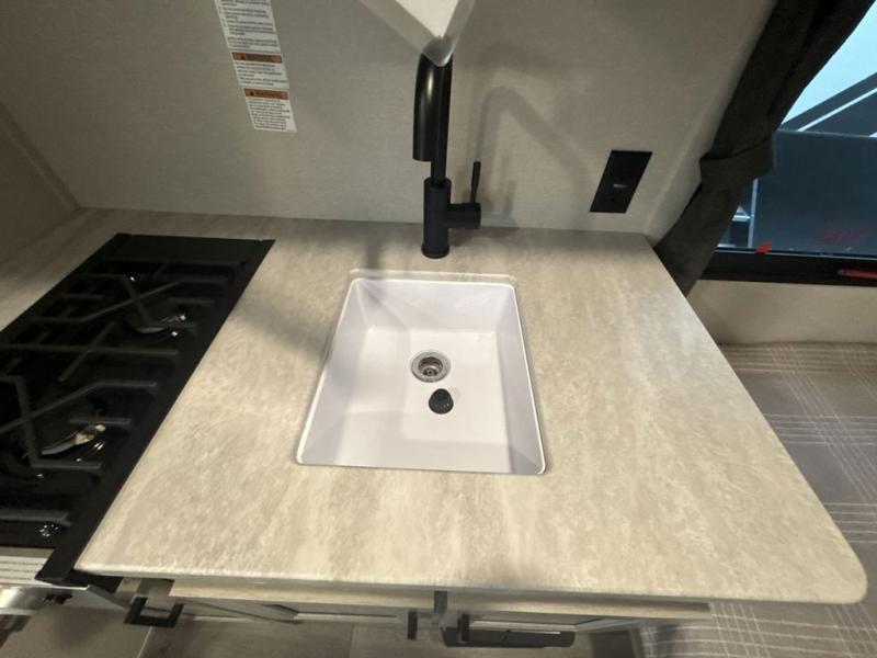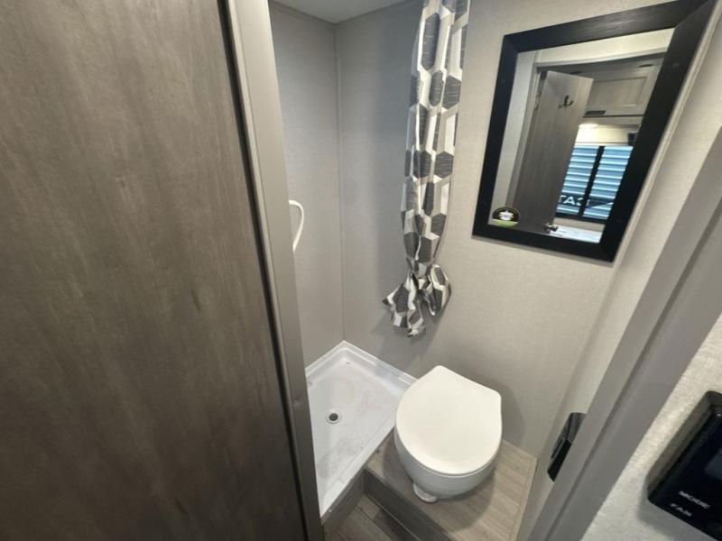Lightweight camping is easier than you think with this travel trailer in tow! The front 54" x 74" queen bed will provide a great night's rest each night, while your overnight guest takes the booth dinette. There is a handy shelf above the front bed for your belongings plus additional bedroom storage. A private bath includes a 24" x 32" shower and a toilet with a mirror behind it so you can freshen up each day. You'll also find a two burner cooktop and microwave oven to make meals each day plus a 3.3 cu. ft. 12V refrigerator for food storage!