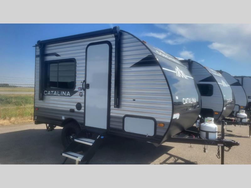 With any Catalina Summit Series 7' by Coachmen RV, you can create an easier adventure with the versatility and simplicity of the shorter lengths and lighter weights! Each includes a premium exterior graphics package, a smooth HD aluminum radius front, and EZ lube axles with leaf spring suspension. The exterior offers a heavy duty standard tongue jack, a diamond plate rock guard to protect against road debris, exterior RG-6 coax cabling and satellite prep, rear view camera prep, and flush mount baggage doors with radius corners for your outdoor gear. Inside, you will enjoy a premium JBL interior speaker, USB charging ports, seamless Thermofoil countertops throughout, a deep basin farm style sink for easy cleanup, and GE kitchen appliances. It's time to choose an affordable and maneuverable single axle trailer today!