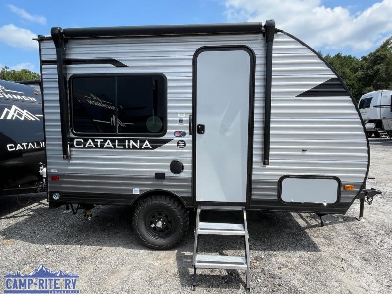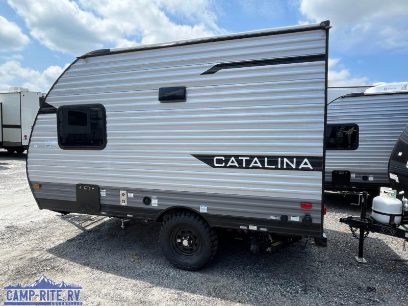With any Catalina Summit Series 7' by Coachmen RV, you can create an easier adventure with the versatility and simplicity of the shorter lengths and lighter weights! Each includes a premium exterior graphics package, a smooth HD aluminum radius front, and EZ lube axles with leaf spring suspension. The exterior offers a heavy duty standard tongue jack, a diamond plate rock guard to protect against road debris, exterior RG-6 coax cabling and satellite prep, rear view camera prep, and flush mount baggage doors with radius corners for your outdoor gear. Inside, you will enjoy a premium JBL interior speaker, USB charging ports, seamless Thermofoil countertops throughout, a deep basin farm style sink for easy cleanup, and GE kitchen appliances. It's time to choose an affordable and maneuverable single axle trailer today!