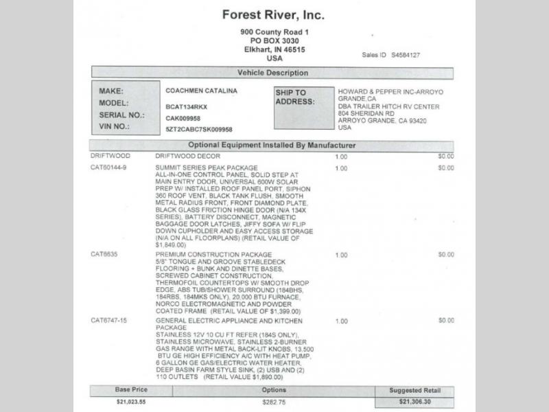 This Catalina Summit Series 7 travel trailer 134RKX highlights: