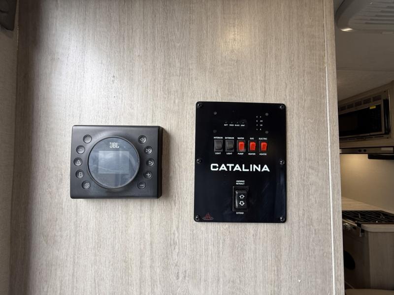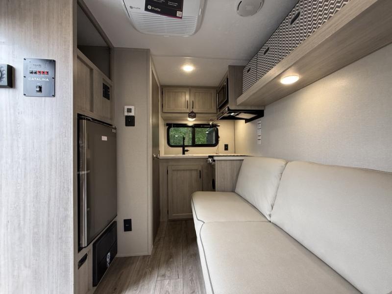 With any Catalina Summit Series 7' by Coachmen RV, you can create an easier adventure with the versatility and simplicity of the shorter lengths and lighter weights! Each includes a premium exterior graphics package, a smooth HD aluminum radius front, and EZ lube axles with leaf spring suspension. The exterior offers a heavy duty standard tongue jack, a diamond plate rock guard to protect against road debris, exterior RG-6 coax cabling and satellite prep, rear view camera prep, and flush mount baggage doors with radius corners for your outdoor gear. Inside, you will enjoy a premium JBL interior speaker, USB charging ports, seamless Thermofoil countertops throughout, a deep basin farm style sink for easy cleanup, and GE kitchen appliances. It's time to choose an affordable and maneuverable single axle trailer today!