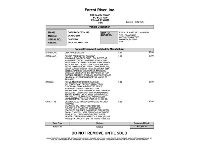 This Catalina Summit Series 7 travel trailer 134RKX highlights: