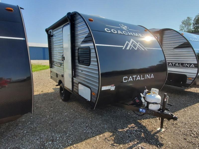 With any Catalina Summit Series 7' by Coachmen RV, you can create an easier adventure with the versatility and simplicity of the shorter lengths and lighter weights! Each includes a premium exterior graphics package, a smooth HD aluminum radius front, and EZ lube axles with leaf spring suspension. The exterior offers a heavy duty standard tongue jack, a diamond plate rock guard to protect against road debris, exterior RG-6 coax cabling and satellite prep, rear view camera prep, and flush mount baggage doors with radius corners for your outdoor gear. Inside, you will enjoy a premium JBL interior speaker, USB charging ports, seamless Thermofoil countertops throughout, a deep basin farm style sink for easy cleanup, and GE kitchen appliances. It's time to choose an affordable and maneuverable single axle trailer today!