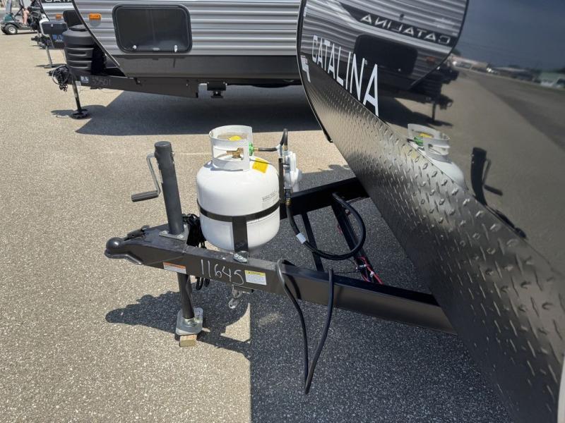 With any Catalina Summit Series 7' by Coachmen RV, you can create an easier adventure with the versatility and simplicity of the shorter lengths and lighter weights! Each includes a premium exterior graphics package, a smooth HD aluminum radius front, and EZ lube axles with leaf spring suspension. The exterior offers a heavy duty standard tongue jack, a diamond plate rock guard to protect against road debris, exterior RG-6 coax cabling and satellite prep, rear view camera prep, and flush mount baggage doors with radius corners for your outdoor gear. Inside, you will enjoy a premium JBL interior speaker, USB charging ports, seamless Thermofoil countertops throughout, a deep basin farm style sink for easy cleanup, and GE kitchen appliances. It's time to choose an affordable and maneuverable single axle trailer today!