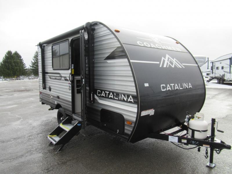 With any Catalina Summit Series 7' by Coachmen RV, you can create an easier adventure with the versatility and simplicity of the shorter lengths and lighter weights! Each includes a premium exterior graphics package, a smooth HD aluminum radius front, and EZ lube axles with leaf spring suspension. The exterior offers a heavy duty standard tongue jack, a diamond plate rock guard to protect against road debris, exterior RG-6 coax cabling and satellite prep, rear view camera prep, and flush mount baggage doors with radius corners for your outdoor gear. Inside, you will enjoy a premium JBL interior speaker, USB charging ports, seamless Thermofoil countertops throughout, a deep basin farm style sink for easy cleanup, and GE kitchen appliances. It's time to choose an affordable and maneuverable single axle trailer today!