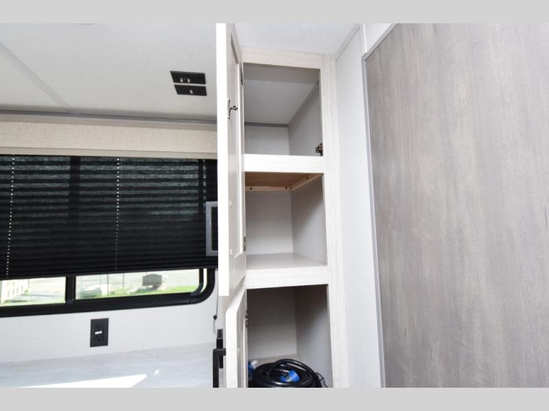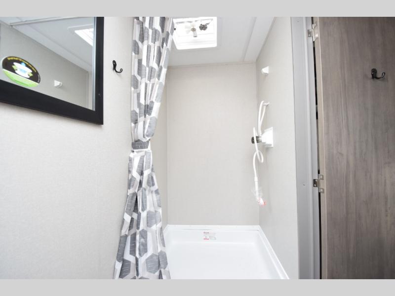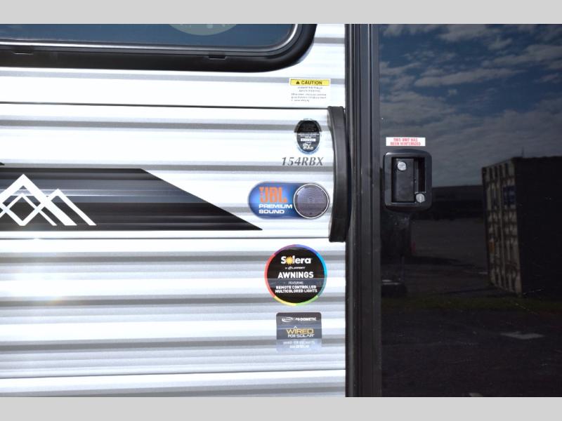 - Premium Exterior Features: The premium exterior graphics package and HD aluminum radius front add durability and style, while the flush mount baggage doors provide convenient storage space for your camping gear.