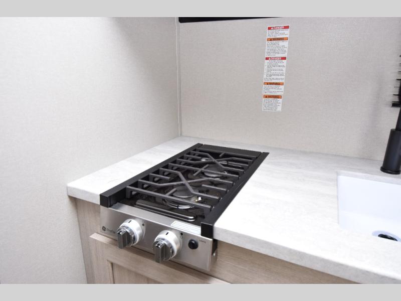 - GE Kitchen Appliances: The GE two-burner cooktop, GE stainless microwave, and 3.3-cu. ft. 12V refrigerator provide all the tools you need to prepare meals and keep food fresh on your travels.