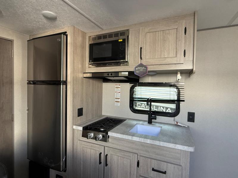 With any Catalina Summit Series 7' by Coachmen RV, you can create an easier adventure with the versatility and simplicity of the shorter lengths and lighter weights! Each includes a premium exterior graphics package, a smooth HD aluminum radius front, and EZ lube axles with leaf spring suspension. The exterior offers a heavy-duty standard tongue jack, a diamond plate rock guard to protect against road debris, exterior RG-6 coax cabling and satellite prep, rear view camera prep, and flush mount baggage doors with radius corners for your outdoor gear. Inside, you will enjoy a premium JBL interior speaker, USB charging ports, seamless Thermofoil countertops throughout, a deep basin farm style sink for easy cleanup, and GE kitchen appliances. It's time to choose an affordable and maneuverable single axle trailer today!