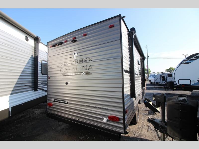 With any Catalina Summit Series 7' by Coachmen RV, you can create an easier adventure with the versatility and simplicity of the shorter lengths and lighter weights! Each includes a premium exterior graphics package, a smooth HD aluminum radius front, and EZ lube axles with leaf spring suspension. The exterior offers a heavy duty standard tongue jack, a diamond plate rock guard to protect against road debris, exterior RG-6 coax cabling and satellite prep, rear view camera prep, and flush mount baggage doors with radius corners for your outdoor gear. Inside, you will enjoy a premium JBL interior speaker, USB charging ports, seamless Thermofoil countertops throughout, a deep basin farm style sink for easy cleanup, and GE kitchen appliances. It's time to choose an affordable and maneuverable single axle trailer today!