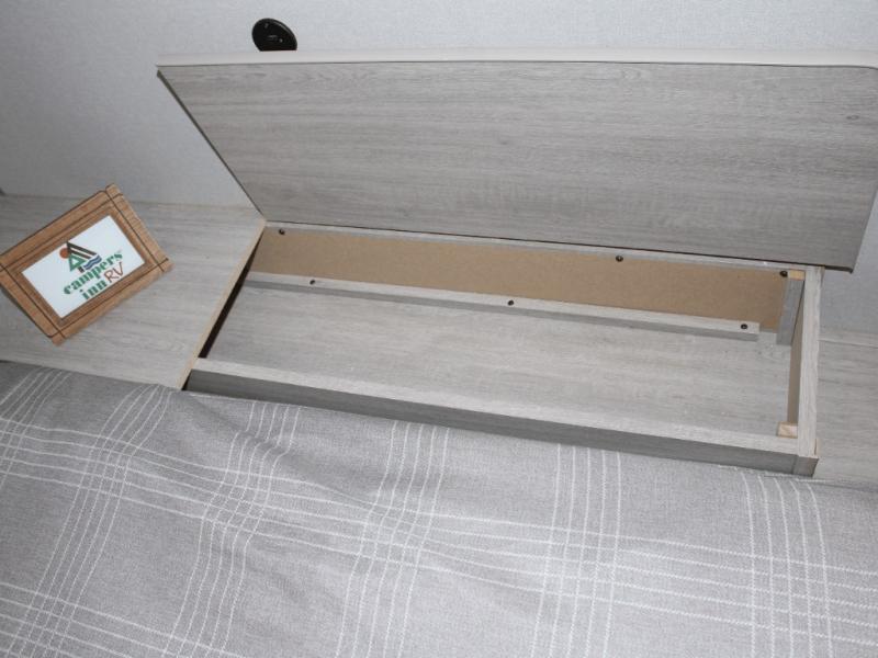 Extend your living space with the 15' power awning, complete with multicolor LED lights and a remote control, perfect for cozy evenings by the fire. Exterior features like a diamond plate rock guard, flush mount baggage doors, and rearview camera prep ensure you're road-ready for whatever the journey brings.