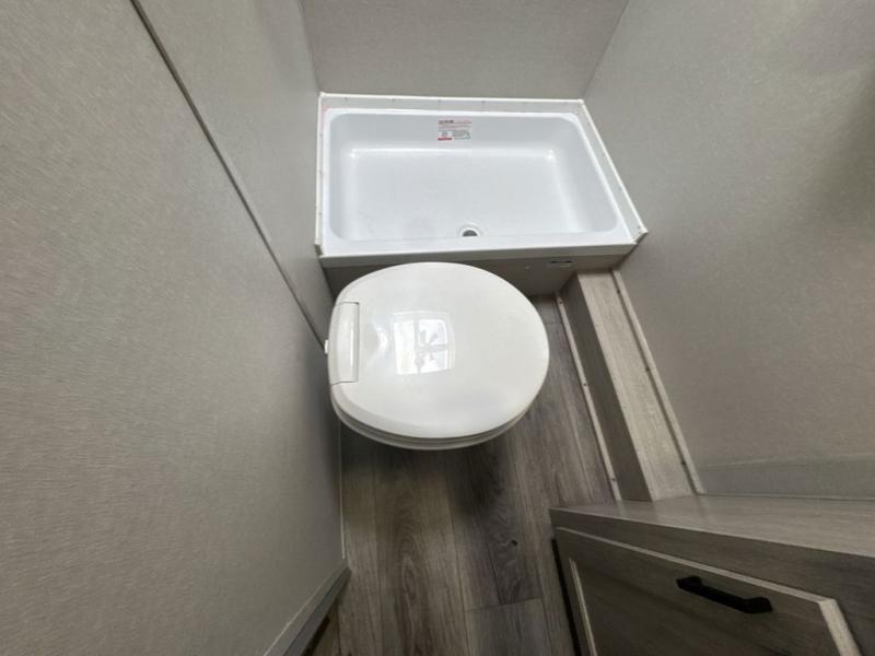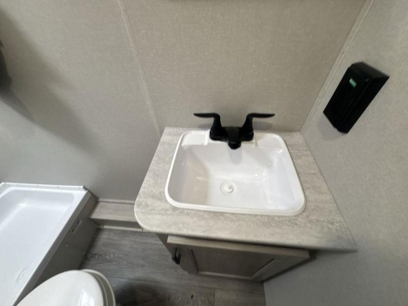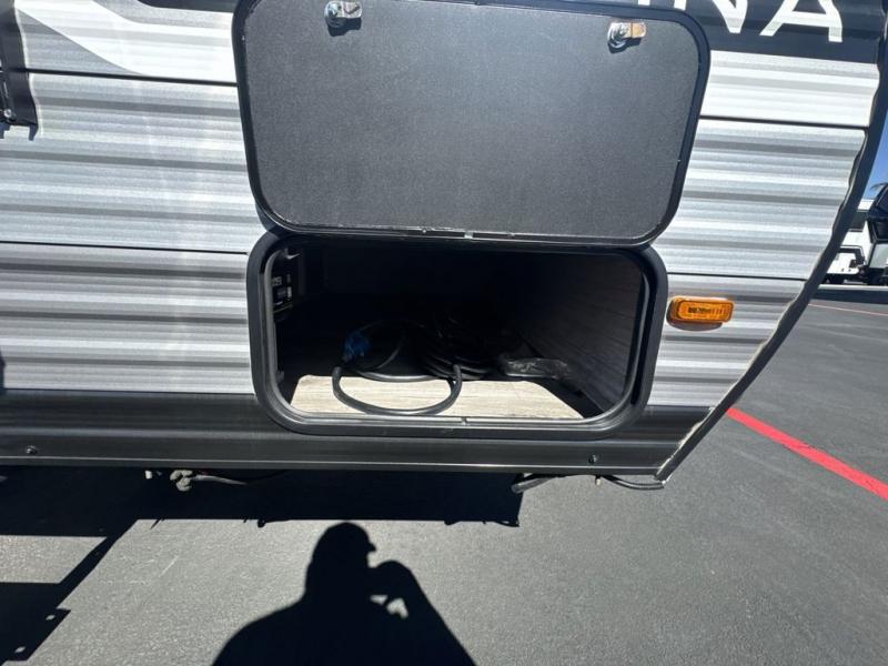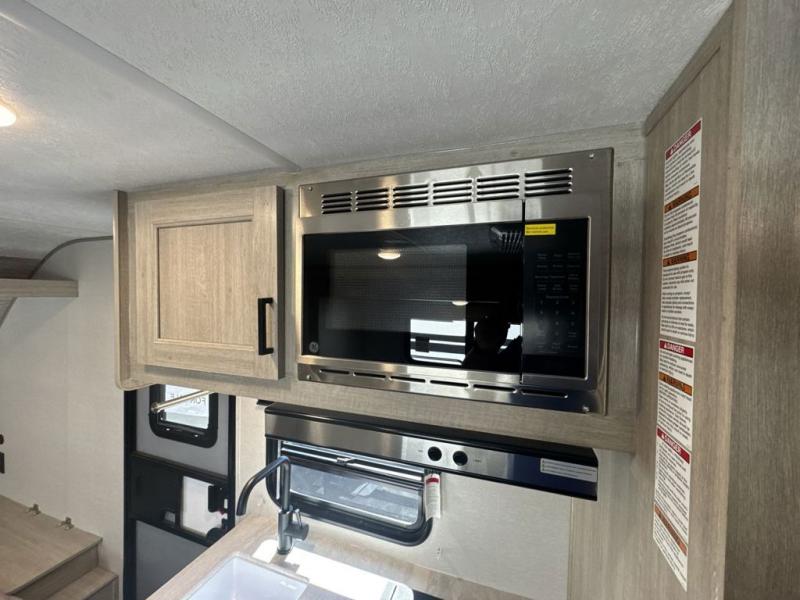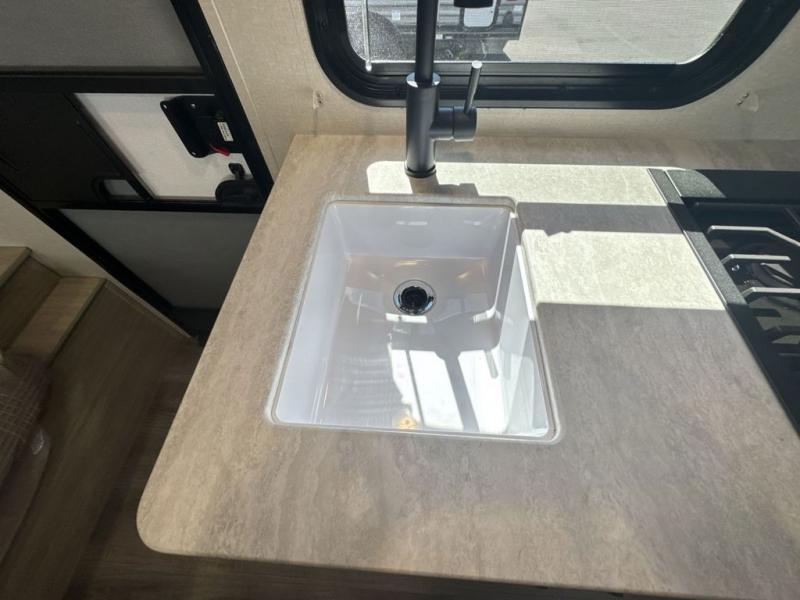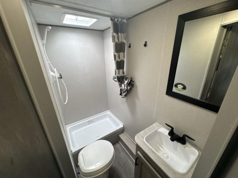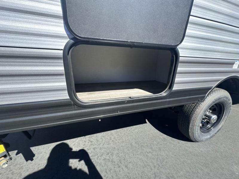 This spacious travel trailer can sleep eight campers each night thanks to the double-size bunks in the back, the U-shaped dinette within the slide out, and the queen bed up front! You can easily make meals for your crew with the two burner cooktop and microwave oven, and leftovers can go in the 10.7 cu. ft. 12V refrigerator! After you've cleaned up in the full bath, head outdoors to relax under the 15' power awning with multicolor LED lights and a remote!