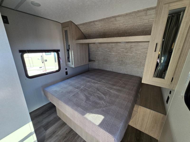 If you are looking for comfort this travel trailer is the one for you due to the amazing front bedroom. Have a relaxing time on the queen bed, which has dual bedside wardrobes and an overhead shelf perfect for storing all your belongings. Moving to the living room, you can take a rest on the 60" sofa jack knife or if you prefer, have a drink or two on the bar top for those hot days. Also for days where the temperature rises, take a refreshing bath in the full bathroom. Finally, this model has an optional 38" dinette, ideal to share your everyday meals with your loved ones.