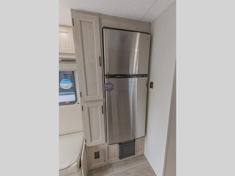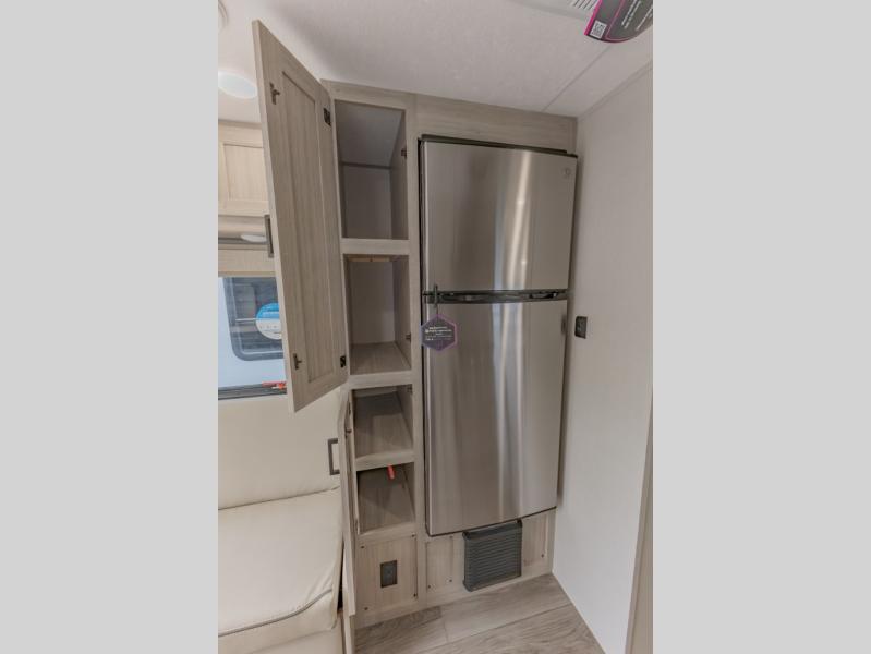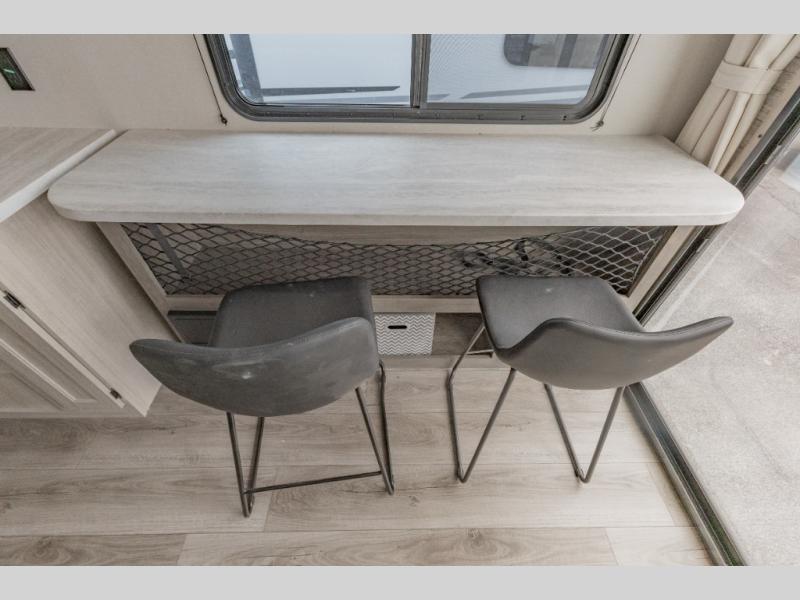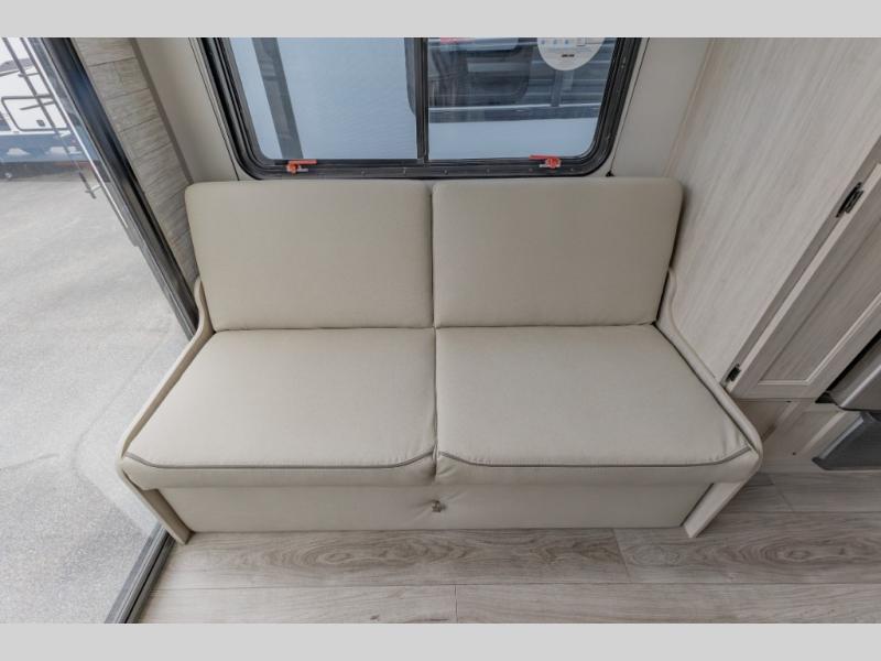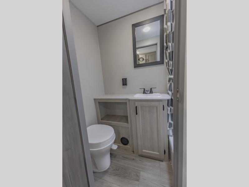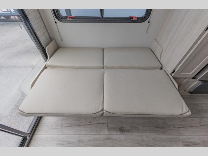 If you are looking for comfort this travel trailer is the one for you due to the amazing front bedroom. Have a relaxing time on the queen bed, which has dual bedside wardrobes and an overhead shelf perfect for storing all your belongings. Moving to the living room, you can take a rest on the 60" sofa jack knife or if you prefer, have a drink or two on the bar top for those hot days. Also for days where the temperature rises, take a refreshing bath in the full bathroom. Finally, this model has an optional 38" dinette, ideal to share your everyday meals with your loved ones.