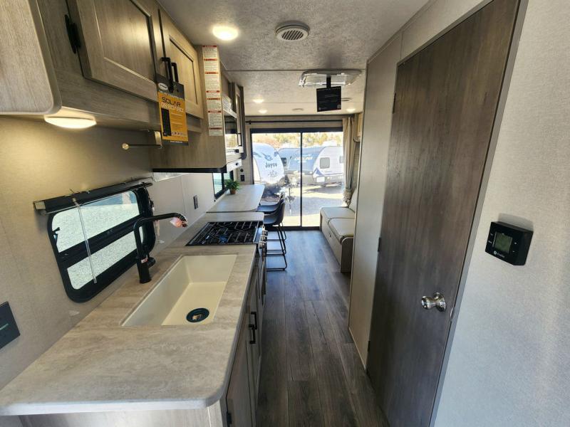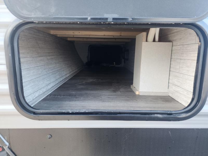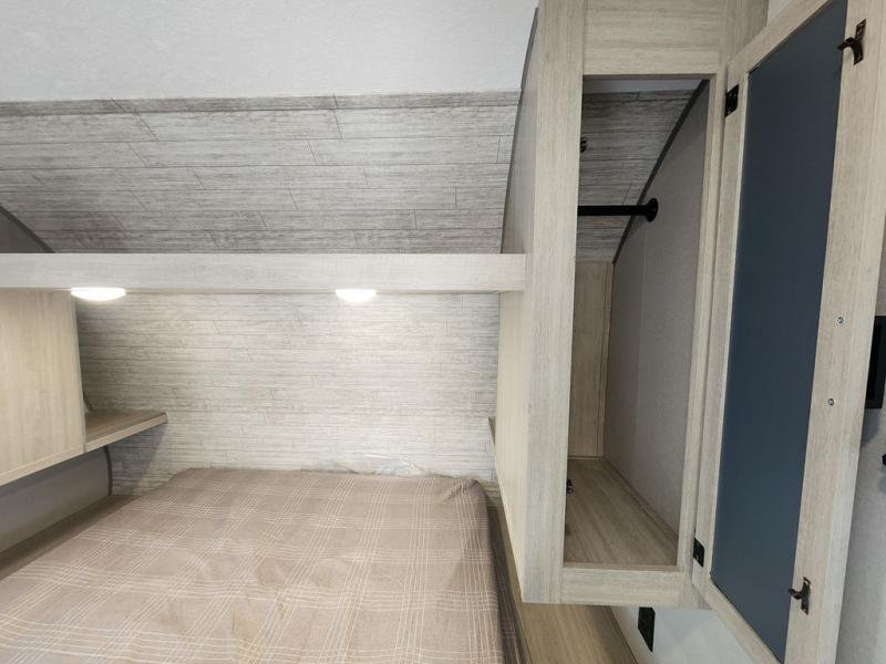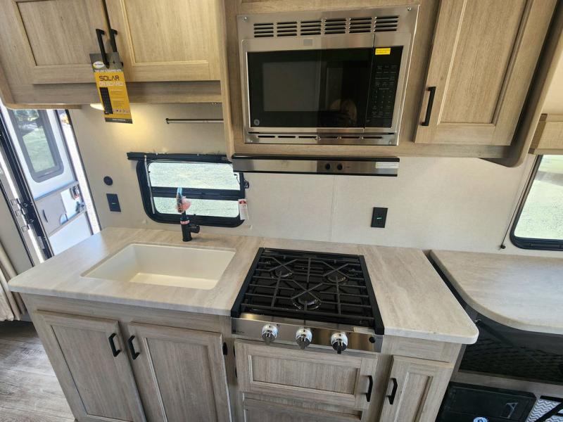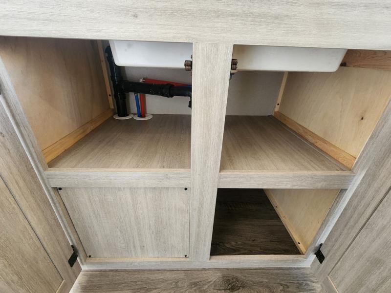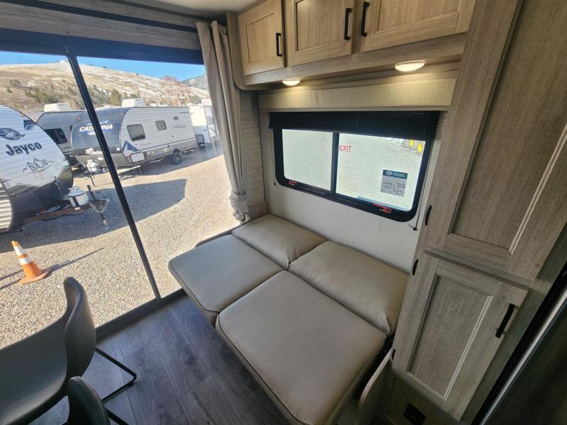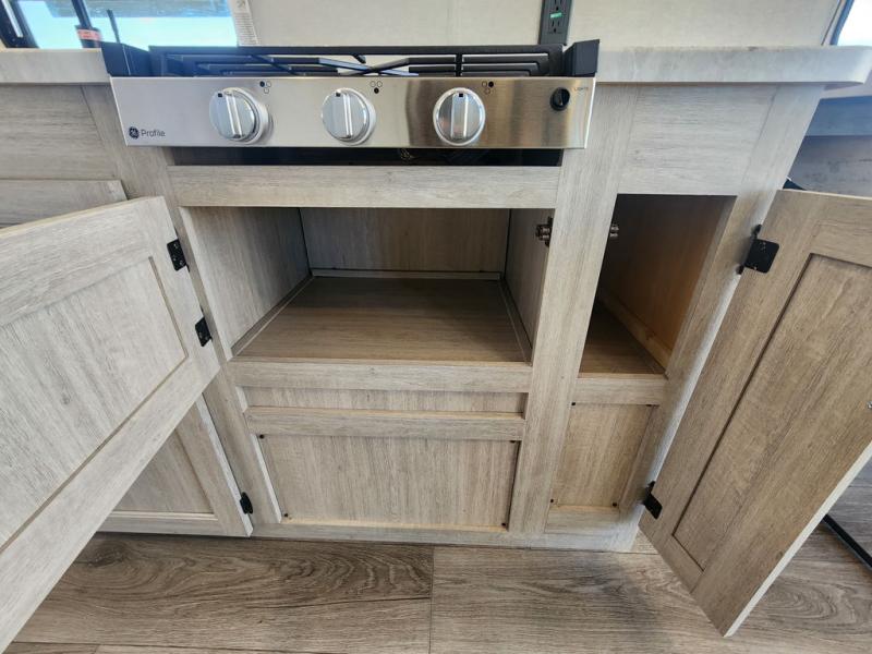 If you are looking for comfort this travel trailer is the one for you due to the amazing front bedroom. Have a relaxing time on the queen bed, which has dual bedside wardrobes and an overhead shelf perfect for storing all your belongings. Moving to the living room, you can take a rest on the 60" sofa jack knife or if you prefer, have a drink or two on the bar top for those hot days. Also for days where the temperature rises, take a refreshing bath in the full bathroom. Finally, this model has an optional 38" dinette, ideal to share your everyday meals with your loved ones.