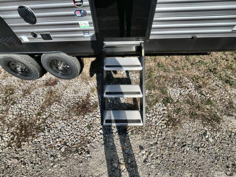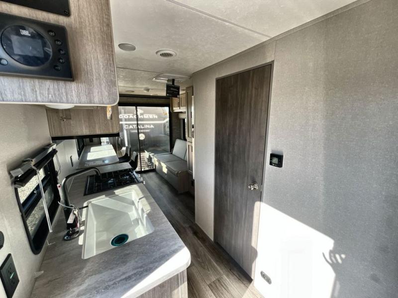 With any Catalina Summit Series 8 by Coachmen you will enjoy an affordable travel trailer packed with at-home comforts! The solid construction includes a Norco electromagnetic powder coated chassis, a seamless Alpha roof membrane, and full length frame outriggers for maximum support and durability. Dexter EZ lube axles with leaf spring suspension and self adjusting brakes provide smooth towing from home to campground, and the premium exterior graphics package is sure to turn heads as you travel down the highway. You will love the features included, such as a JBL Aura Cube media center, magnetic baggage door latches, 4,000 lumen interior touch lighting, and the list goes on!