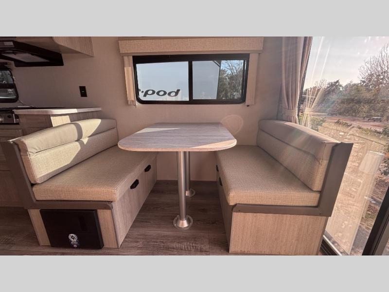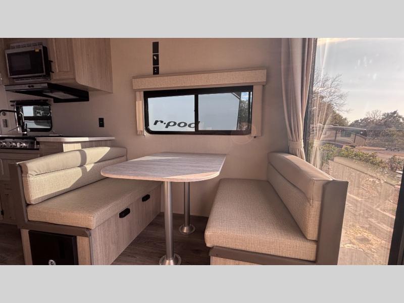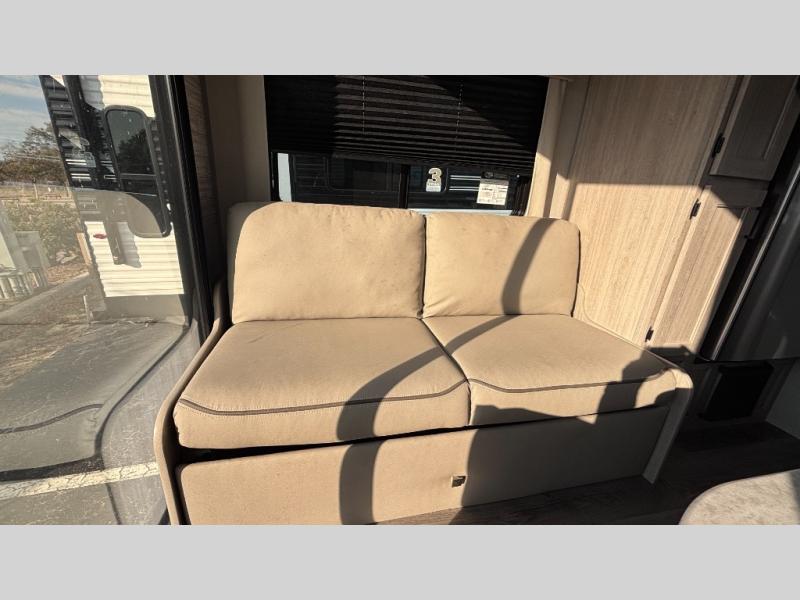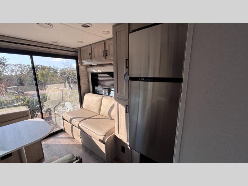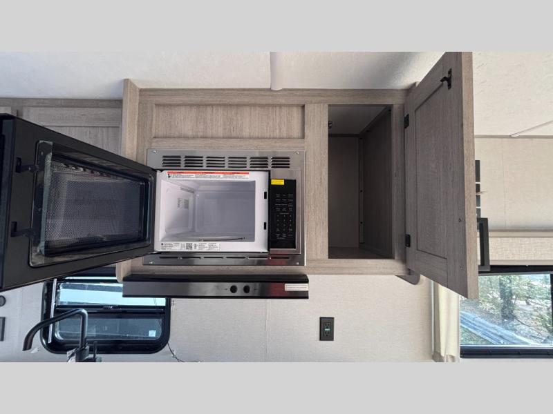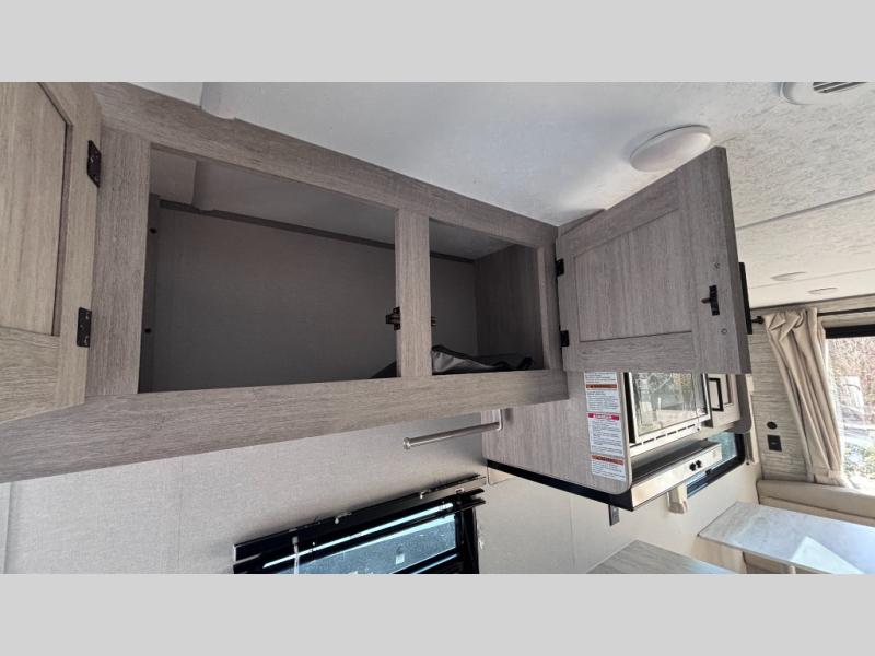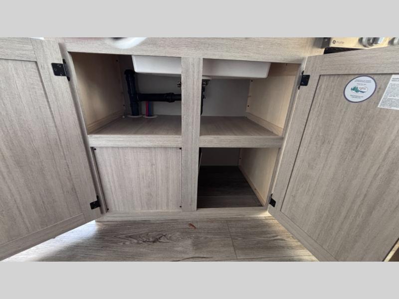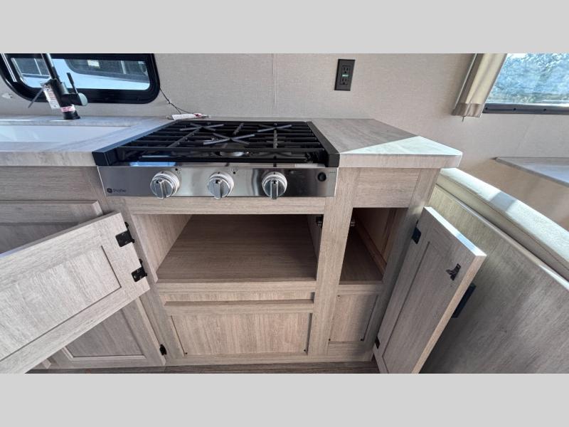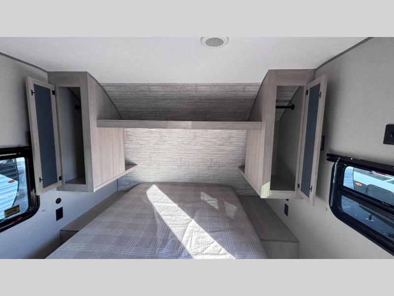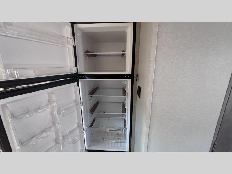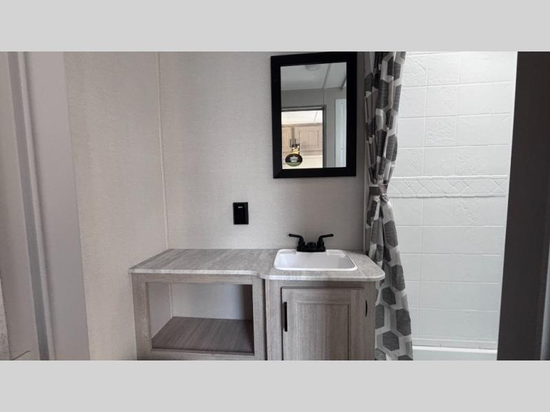 If you are looking for comfort this travel trailer is the one for you due to the amazing front bedroom. Have a relaxing time on the queen bed, which has dual bedside wardrobes and an overhead shelf perfect for storing all your belongings. Moving to the living room, you can take a rest on the 60" sofa jack knife or if you prefer, have a drink or two on the bar top for those hot days. Also for days where the temperature rises, take a refreshing bath in the full bathroom. Finally, this model has an optional 38" dinette, ideal to share your everyday meals with your loved ones.