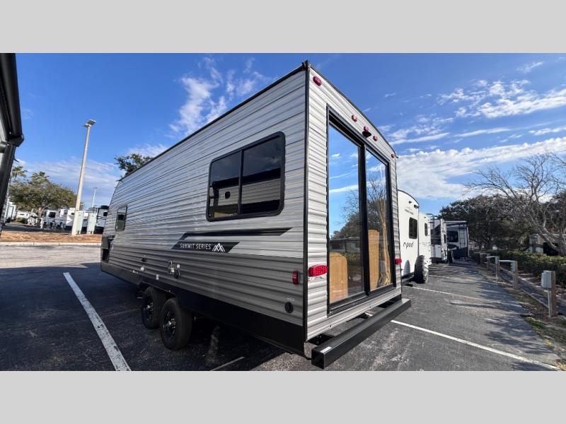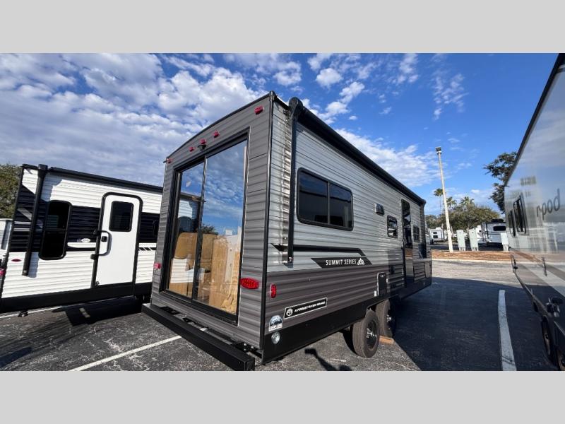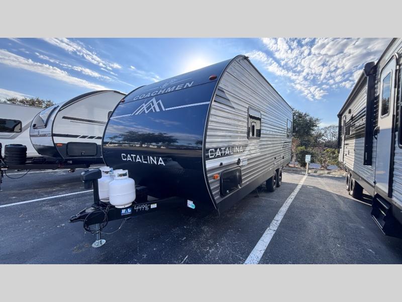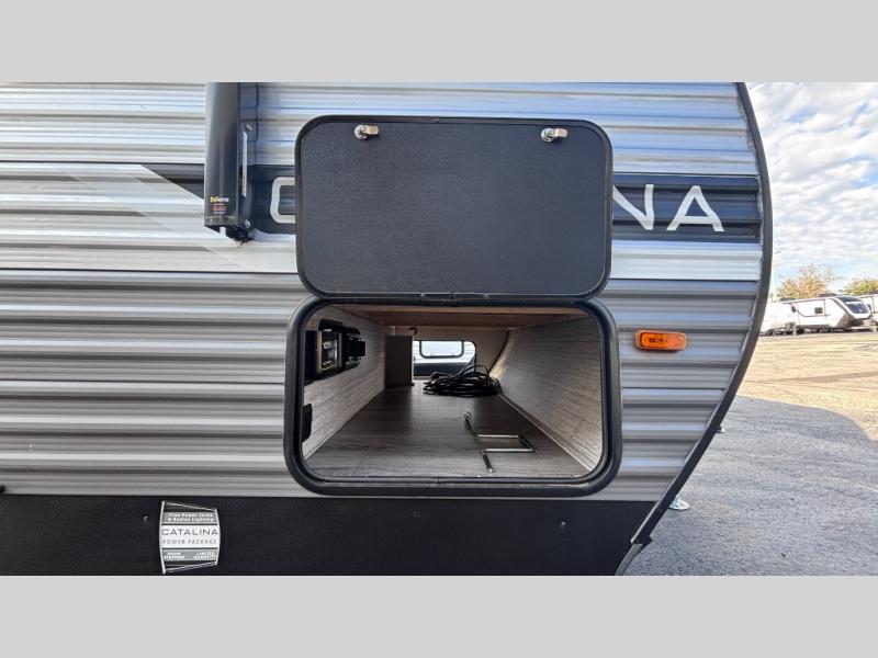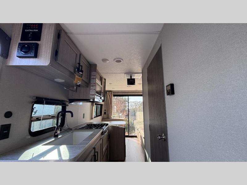 With any Catalina Summit Series 8 by Coachmen you will enjoy an affordable travel trailer packed with at-home comforts! The solid construction includes a Norco electromagnetic powder coated chassis, a seamless Alpha roof membrane, and full length frame outriggers for maximum support and durability. Dexter EZ lube axles with leaf spring suspension and self adjusting brakes provide smooth towing from home to campground, and the premium exterior graphics package is sure to turn heads as you travel down the highway. You will love the features included, such as a JBL Aura Cube media center, magnetic baggage door latches, 4,000 lumen interior touch lighting, and the list goes on!