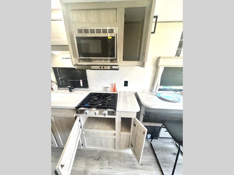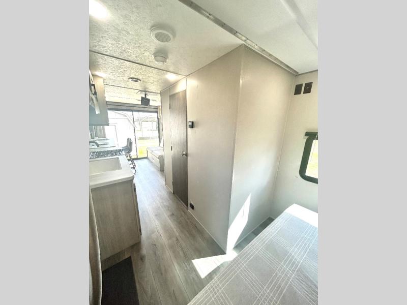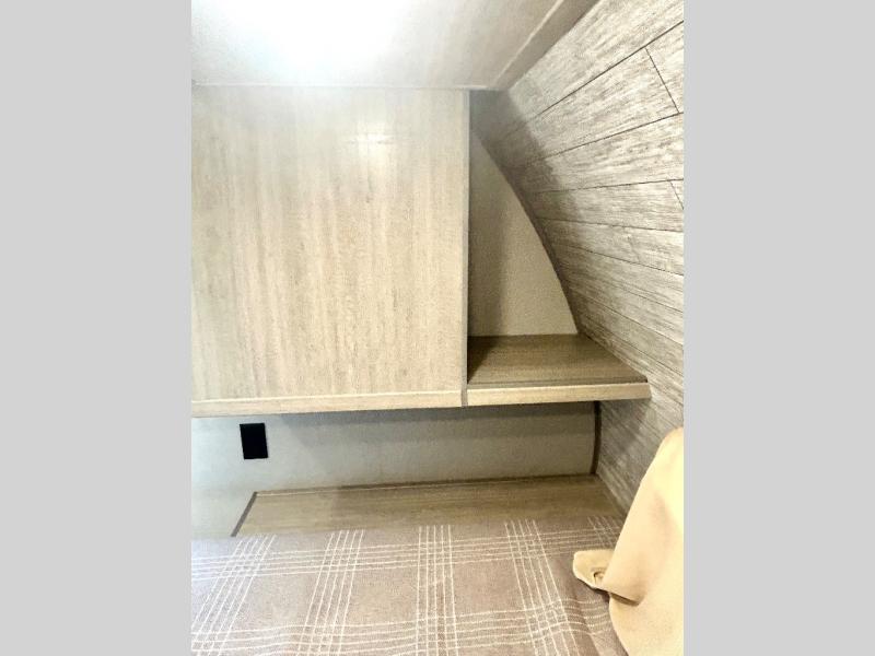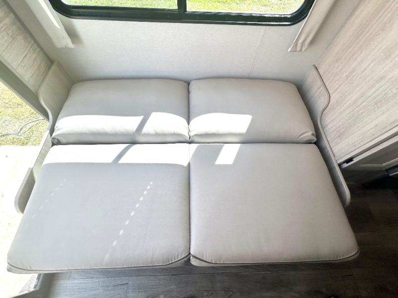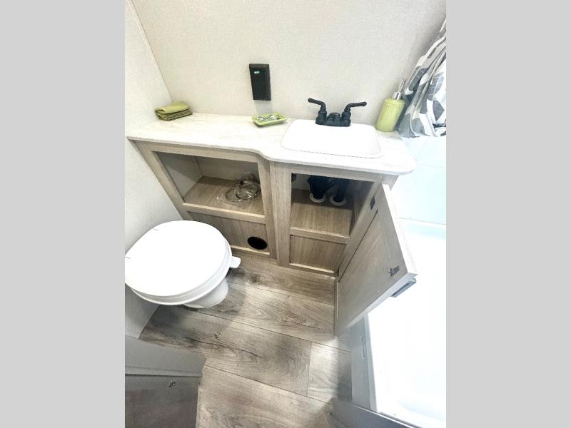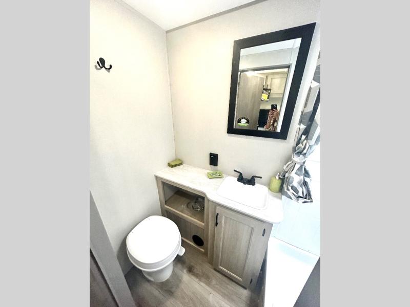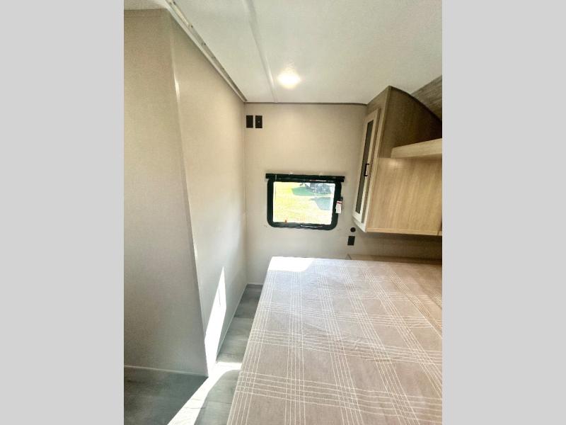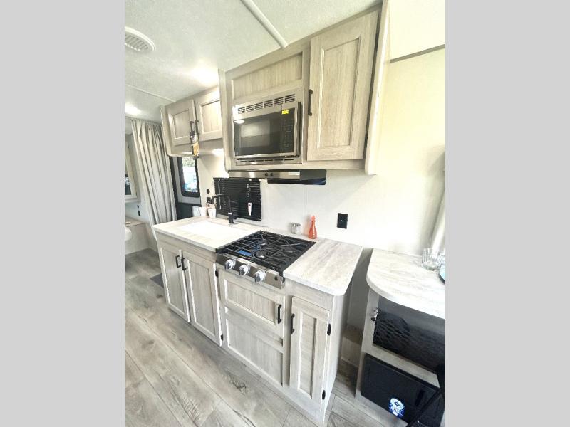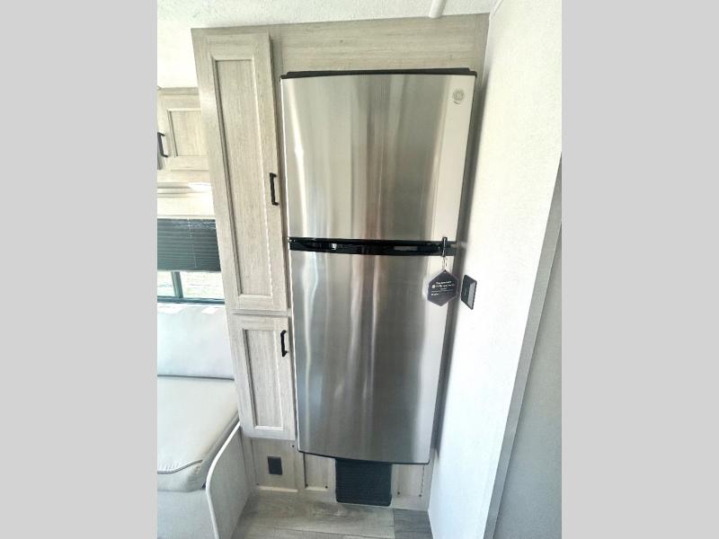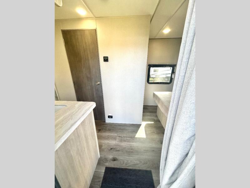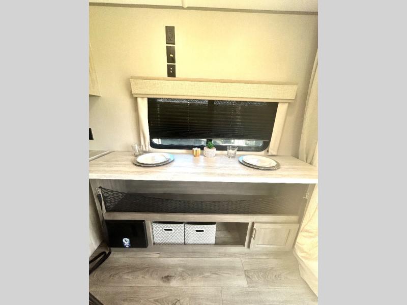 If you are looking for comfort this travel trailer is the one for you due to the amazing front bedroom. Have a relaxing time on the queen bed, which has dual bedside wardrobes and an overhead shelf perfect for storing all your belongings. Moving to the living room, you can take a rest on the 60" sofa jack knife or if you prefer, have a drink or two on the bar top for those hot days. Also for days where the temperature rises, take a refreshing bath in the full bathroom. Finally, this model has an optional 38" dinette, ideal to share your everyday meals with your loved ones.