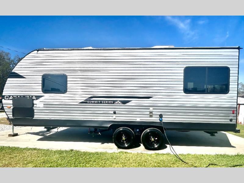 With any Catalina Summit Series 8 by Coachmen you will enjoy an affordable travel trailer packed with at-home comforts! The solid construction includes a Norco electromagnetic powder coated chassis, a seamless Alpha roof membrane, and full length frame outriggers for maximum support and durability. Dexter EZ lube axles with leaf spring suspension and self adjusting brakes provide smooth towing from home to campground, and the premium exterior graphics package is sure to turn heads as you travel down the highway. You will love the features included, such as a JBL Aura Cube media center, magnetic baggage door latches, 4,000 lumen interior touch lighting, and the list goes on!