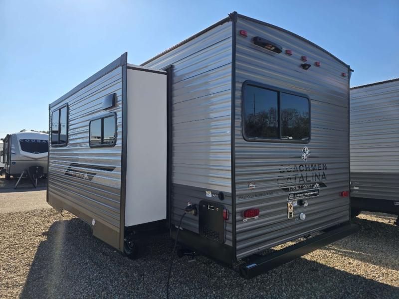With any Catalina Summit Series 8 by Coachmen you will enjoy an affordable travel trailer packed with at-home comforts! The solid construction includes a Norco electromagnetic powder coated chassis, a seamless Alpha roof membrane, and full length frame outriggers for maximum support and durability. Dexter EZ lube axles with leaf spring suspension and self adjusting brakes provide smooth towing from home to campground, and the premium exterior graphics package is sure to turn heads as you travel down the highway. You will love the features included, such as a JBL Aura Cube media center, magnetic baggage door latches, 4,000 lumen interior touch lighting, and the list goes on!