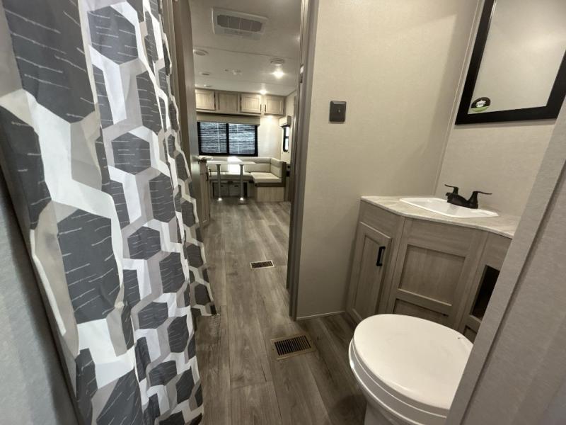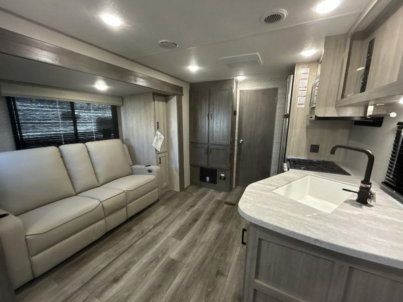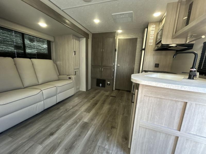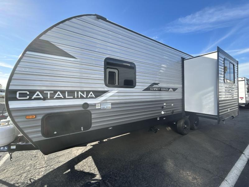 With any Catalina Summit Series 8 by Coachmen you will enjoy an affordable travel trailer packed with at-home comforts! The solid construction includes a Norco electromagnetic powder coated chassis, a seamless Alpha roof membrane, and full length frame outriggers for maximum support and durability. Dexter EZ lube axles with leaf spring suspension and self adjusting brakes provide smooth towing from home to campground, and the premium exterior graphics package is sure to turn heads as you travel down the highway. You will love the features included, such as a JBL Aura Cube media center, magnetic baggage door latches, 4,000 lumen interior touch lighting, and the list goes on!