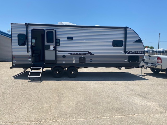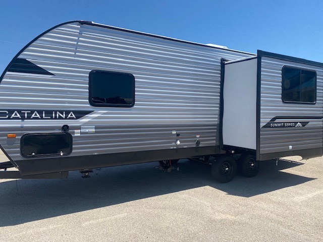 With any Catalina Summit Series 8 by Coachmen you will enjoy an affordable travel trailer packed with at-home comforts! The solid construction includes a Norco electromagnetic powder coated chassis, a seamless Alpha roof membrane, and full length frame outriggers for maximum support and durability. Dexter EZ lube axles with leaf spring suspension and self adjusting brakes provide smooth towing from home to campground, and the premium exterior graphics package is sure to turn heads as you travel down the highway. You will love the features included, such as a JBL Aura Cube media center, magnetic baggage door latches, 4,000 lumen interior touch lighting, and the list goes on!