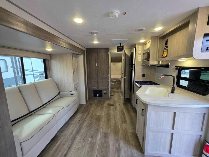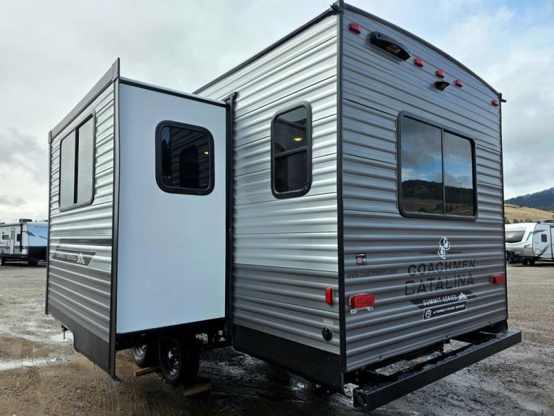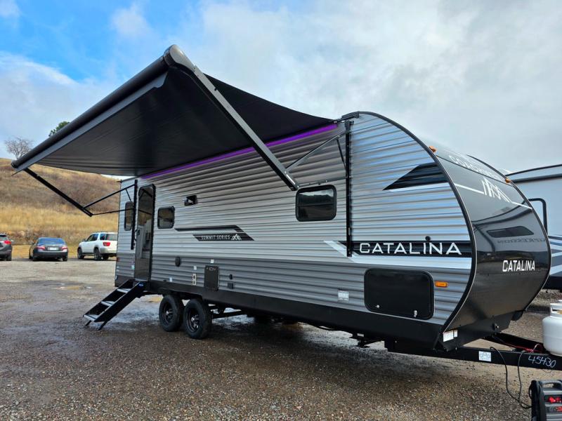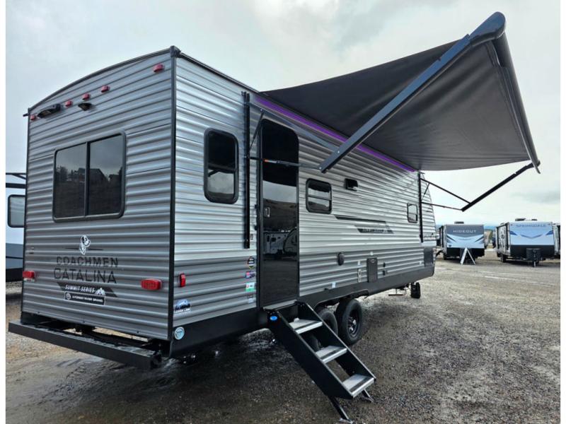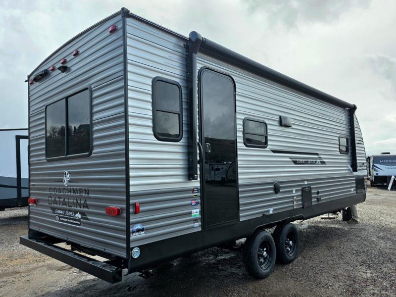 With any Catalina Summit Series 8 by Coachmen you will enjoy an affordable travel trailer packed with at-home comforts! The solid construction includes a Norco electromagnetic powder coated chassis, a seamless Alpha roof membrane, and full length frame outriggers for maximum support and durability. Dexter EZ lube axles with leaf spring suspension and self adjusting brakes provide smooth towing from home to campground, and the premium exterior graphics package is sure to turn heads as you travel down the highway. You will love the features included, such as a JBL Aura Cube media center, magnetic baggage door latches, 4,000 lumen interior touch lighting, and the list goes on!