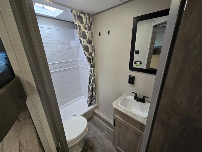 The Catalina Summit Series 8 offers the ultimate blend of comfort, functionality, and durability. Inside, you'll find ample space for relaxation and storage, with a booth dinette and sofa providing flexible seating options. The queen bed in the semi-private bedroom ensures a restful night’s sleep, while the double-size bunks offer a fun space for the kids.