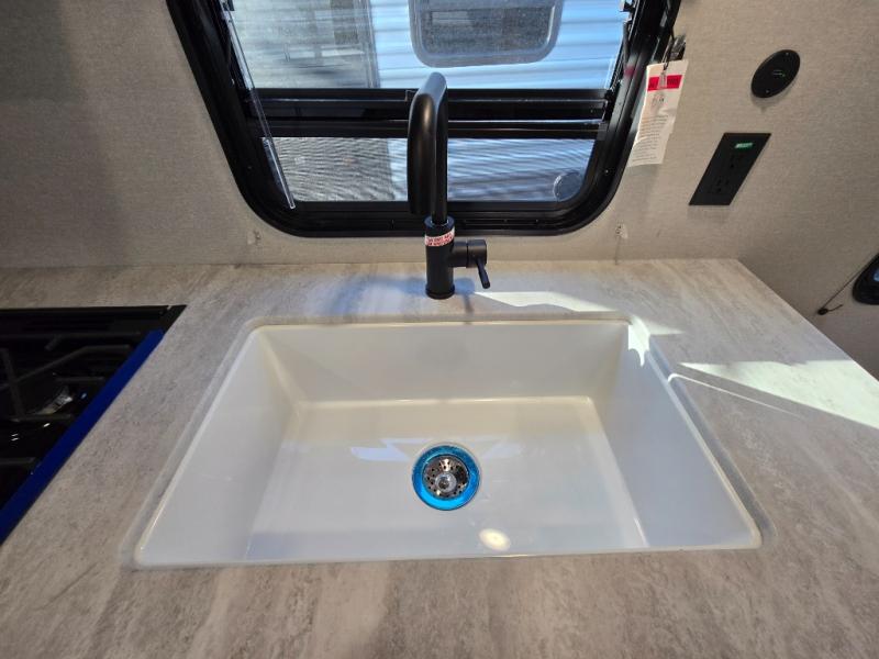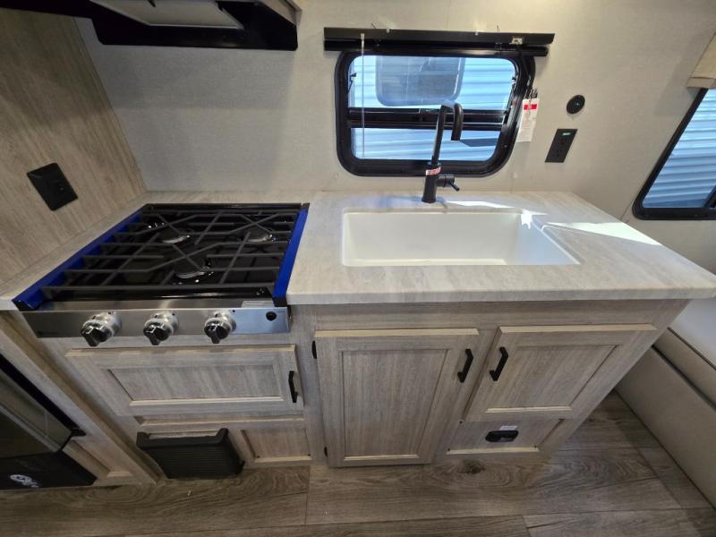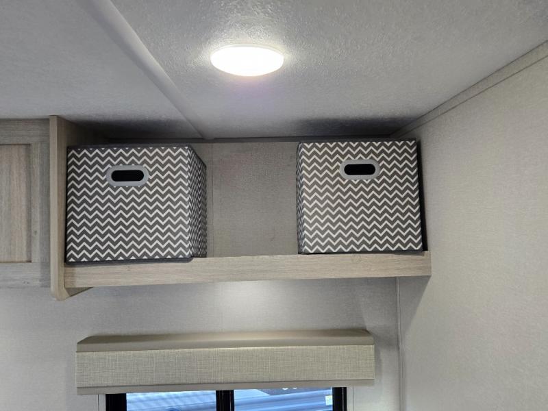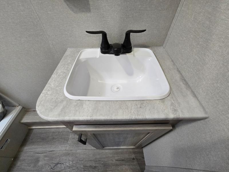 - Full Bathroom: Conveniently located for easy access without having to leave the trailer.