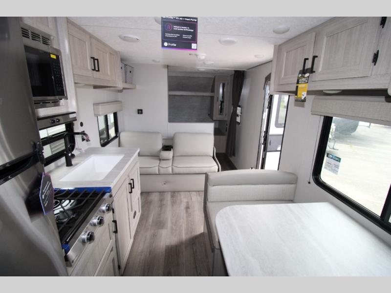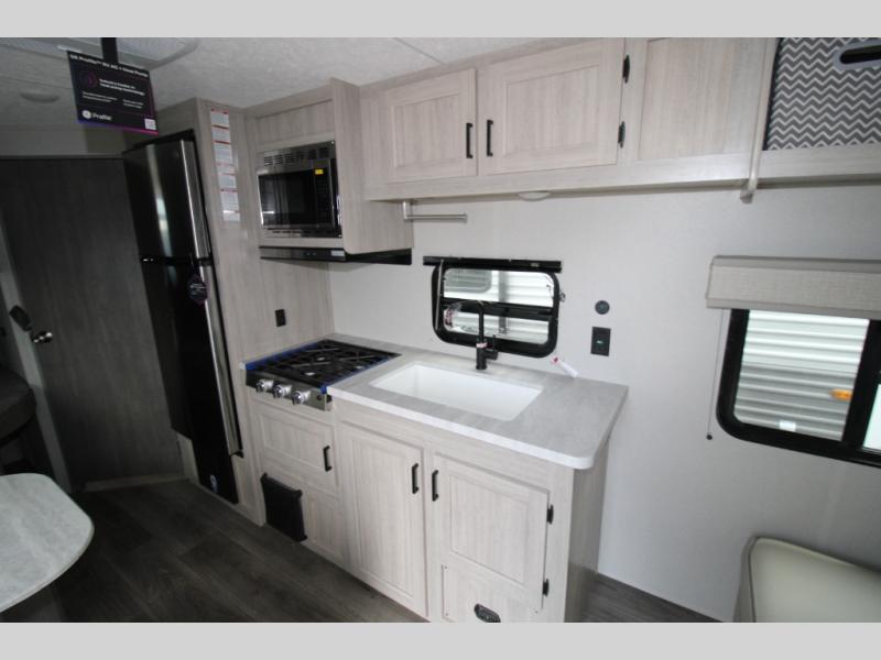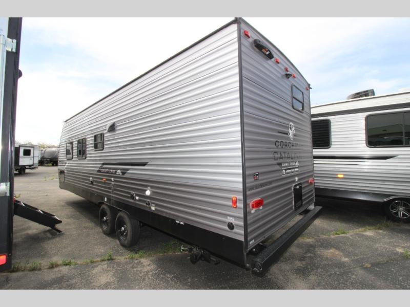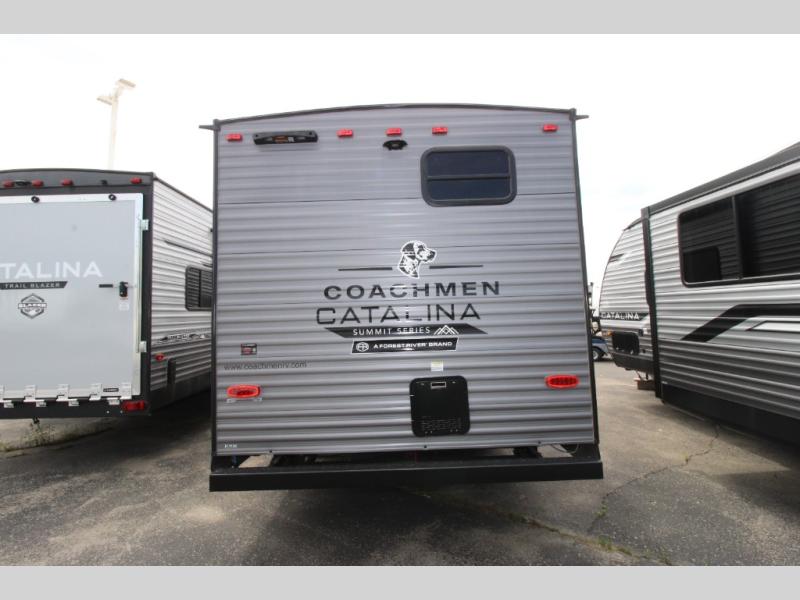 With any Catalina Summit Series 8 by Coachmen you will enjoy an affordable travel trailer packed with at-home comforts! The solid construction includes a Norco electromagnetic powder coated chassis, a seamless Alpha roof membrane, and full length frame outriggers for maximum support and durability. Dexter EZ lube axles with leaf spring suspension and self adjusting brakes provide smooth towing from home to campground, and the premium exterior graphics package is sure to turn heads as you travel down the highway. You will love the features included, such as a JBL Aura Cube media center, magnetic baggage door latches, 4,000 lumen interior touch lighting, LCI One Control, and the list goes on!