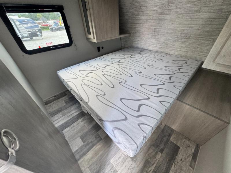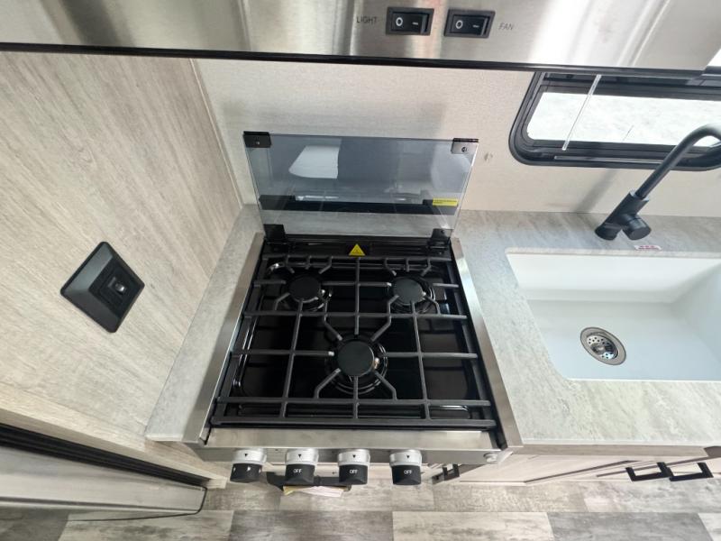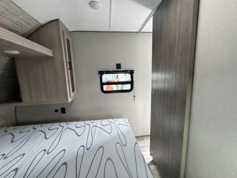 Weighing in at just 4,822 lbs (UVW), this lightweight travel trailer is half-ton towable and designed for families who want a brand-new camper with a full factory warranty at a pre-owned price point.