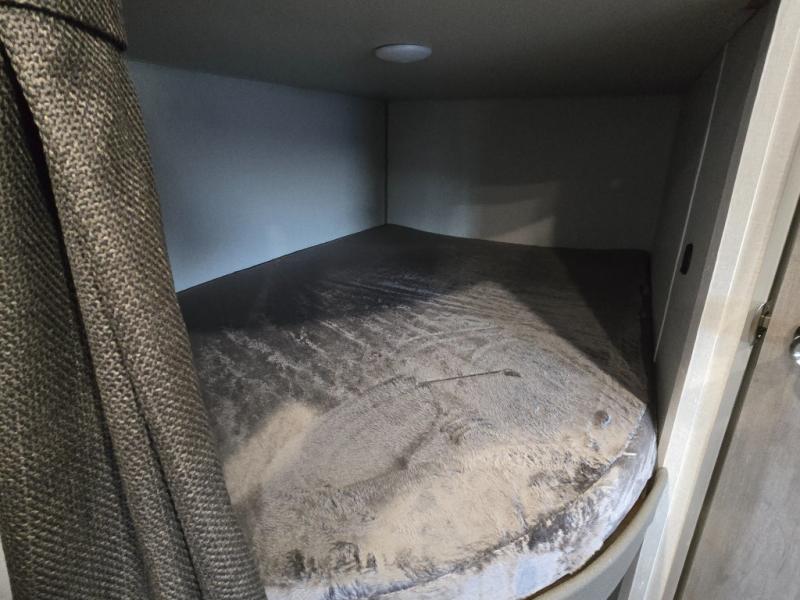 This is the perfect mid-size travel trailer for you and your family! The 46" x 74" double-size bunk beds with lower interior storage offer a comfortable sleeping space for the kids and you will have your own private sleeping space with the 60" x 74" queen bed in the front private bedroom. Freshen up each morning in the rear corner bathroom with the tub/shower and a mirror to get ready each morning. You can prepare your best home cooked meals with the GE stainless three burner cooktop and GE stainless 10.7 cu. ft. 12V refrigerator, then enjoy them together at the booth dinette. The sofa is near the entertainment center for a relaxing movie night. Don't leave any of your outdoor gear behind either thanks to the front pass-through storage area and the exterior outside storage area. You could even add the optional outside camper kitchen to grill the catch of the day on the pull out griddle!
