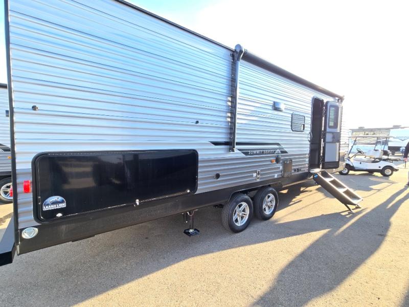With any Catalina Summit Series 8 by Coachmen you will enjoy an affordable travel trailer packed with at-home comforts! The solid construction includes a Norco electromagnetic powder coated chassis, a seamless Alpha roof membrane, and full length frame outriggers for maximum support and durability. Dexter EZ lube axles with leaf spring suspension and self adjusting brakes provide smooth towing from home to campground, and the premium exterior graphics package is sure to turn heads as you travel down the highway. You will love the features included, such as a JBL Aura Cube media center, magnetic baggage door latches, 4,000 lumen interior touch lighting, LCI One Control, and the list goes on!