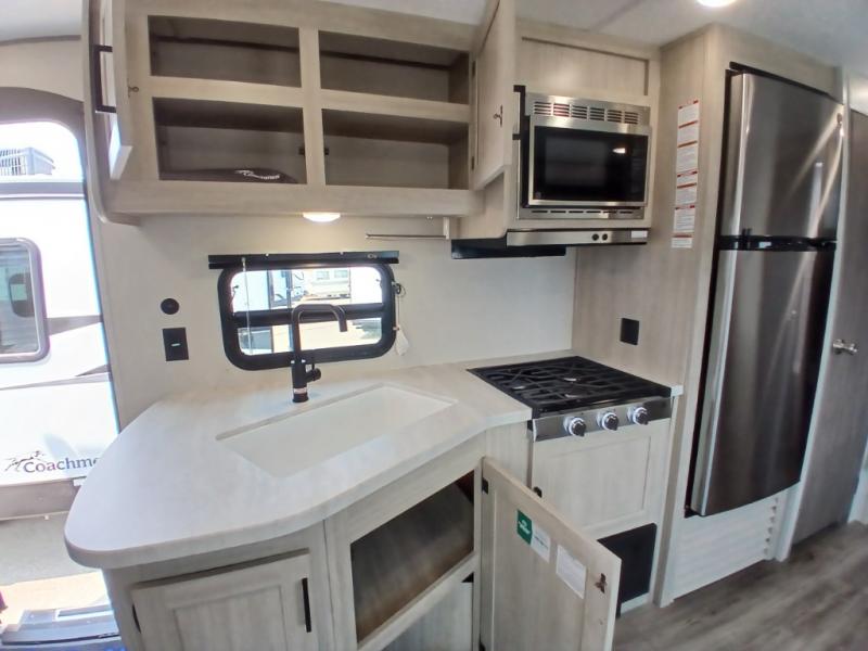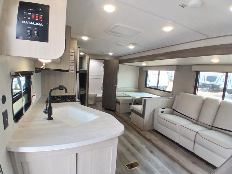 With any Catalina Summit Series 8 by Coachmen you will enjoy an affordable travel trailer packed with at-home comforts! The solid construction includes a Norco electromagnetic powder coated chassis, a seamless Alpha roof membrane, and full length frame outriggers for maximum support and durability. Dexter EZ lube axles with leaf spring suspension and self adjusting brakes provide smooth towing from home to campground, and the premium exterior graphics package is sure to turn heads as you travel down the highway. You will love the features included, such as a JBL Aura Cube media center, magnetic baggage door latches, 4,000 lumen interior touch lighting, LCI One Control, and the list goes on!
