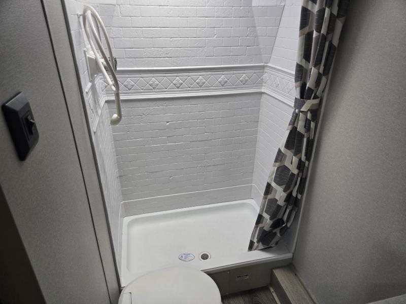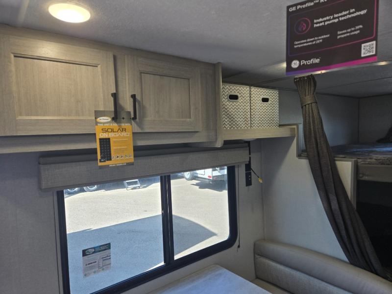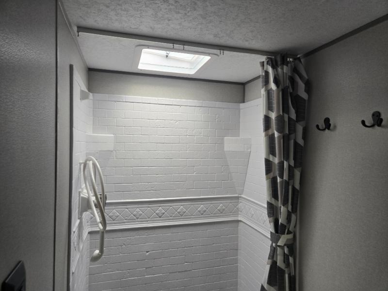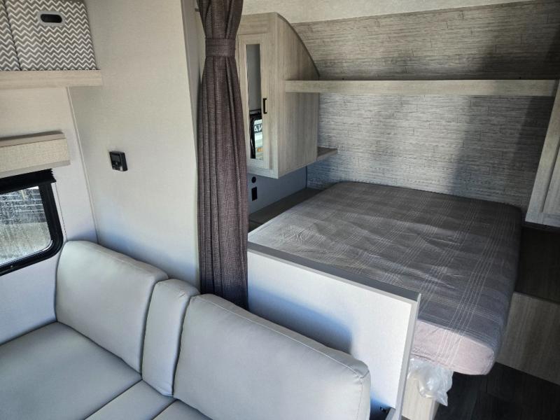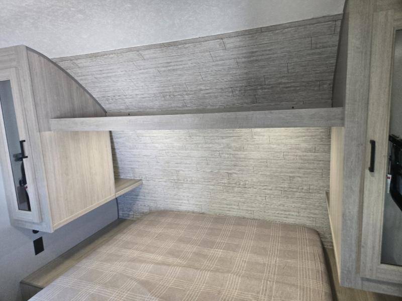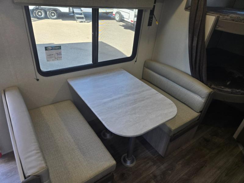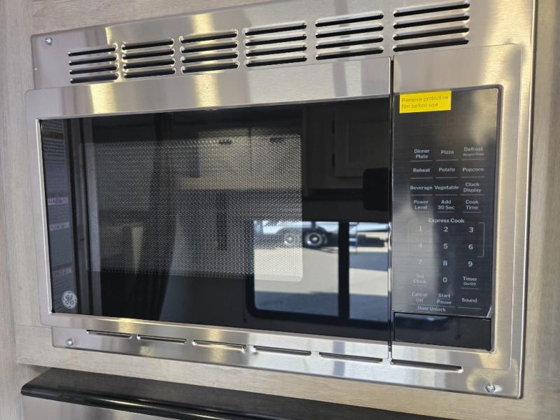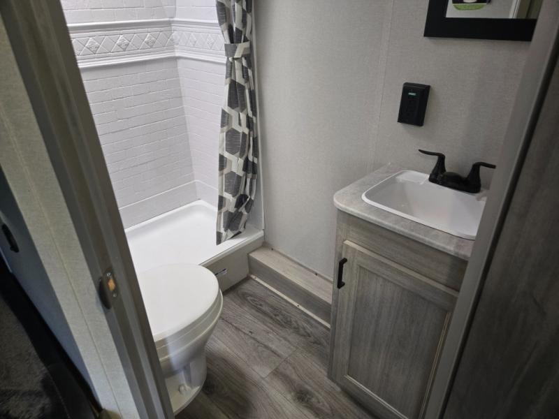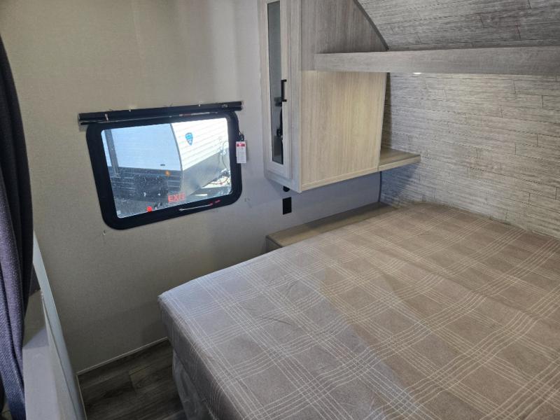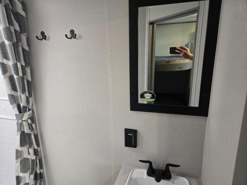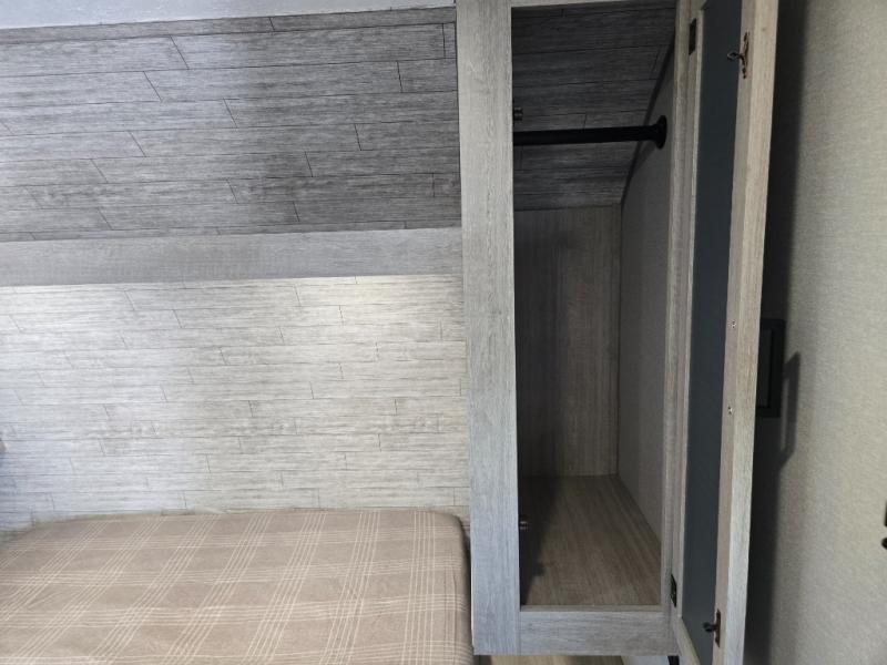 This is the perfect mid-size travel trailer for you and your family! The 46" x 74" double-size bunk beds with lower interior storage offer a comfortable sleeping space for the kids and you will have your own private sleeping space with the 60" x 74" queen bed in the front private bedroom. Freshen up each morning in the rear corner bathroom with the tub/shower and a mirror to get ready each morning. You can prepare your best home cooked meals with the GE stainless three burner cooktop and GE stainless 10.7 cu. ft. 12V refrigerator, then enjoy them together at the booth dinette. The sofa is near the entertainment center for a relaxing movie night. Don't leave any of your outdoor gear behind either thanks to the front pass-through storage area and the exterior outside storage area. You could even add the optional outside camper kitchen to grill the catch of the day on the pull out griddle!