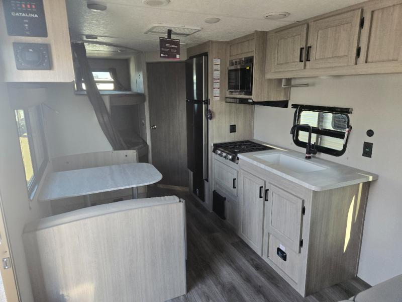 With any Catalina Summit Series 8 by Coachmen you will enjoy an affordable travel trailer packed with at-home comforts! The solid construction includes a Norco electromagnetic powder coated chassis, a seamless Alpha roof membrane, and full length frame outriggers for maximum support and durability. Dexter EZ lube axles with leaf spring suspension and self adjusting brakes provide smooth towing from home to campground, and the premium exterior graphics package is sure to turn heads as you travel down the highway. You will love the features included, such as a JBL Aura Cube media center, magnetic baggage door latches, 4,000 lumen interior touch lighting, LCI One Control, and the list goes on!